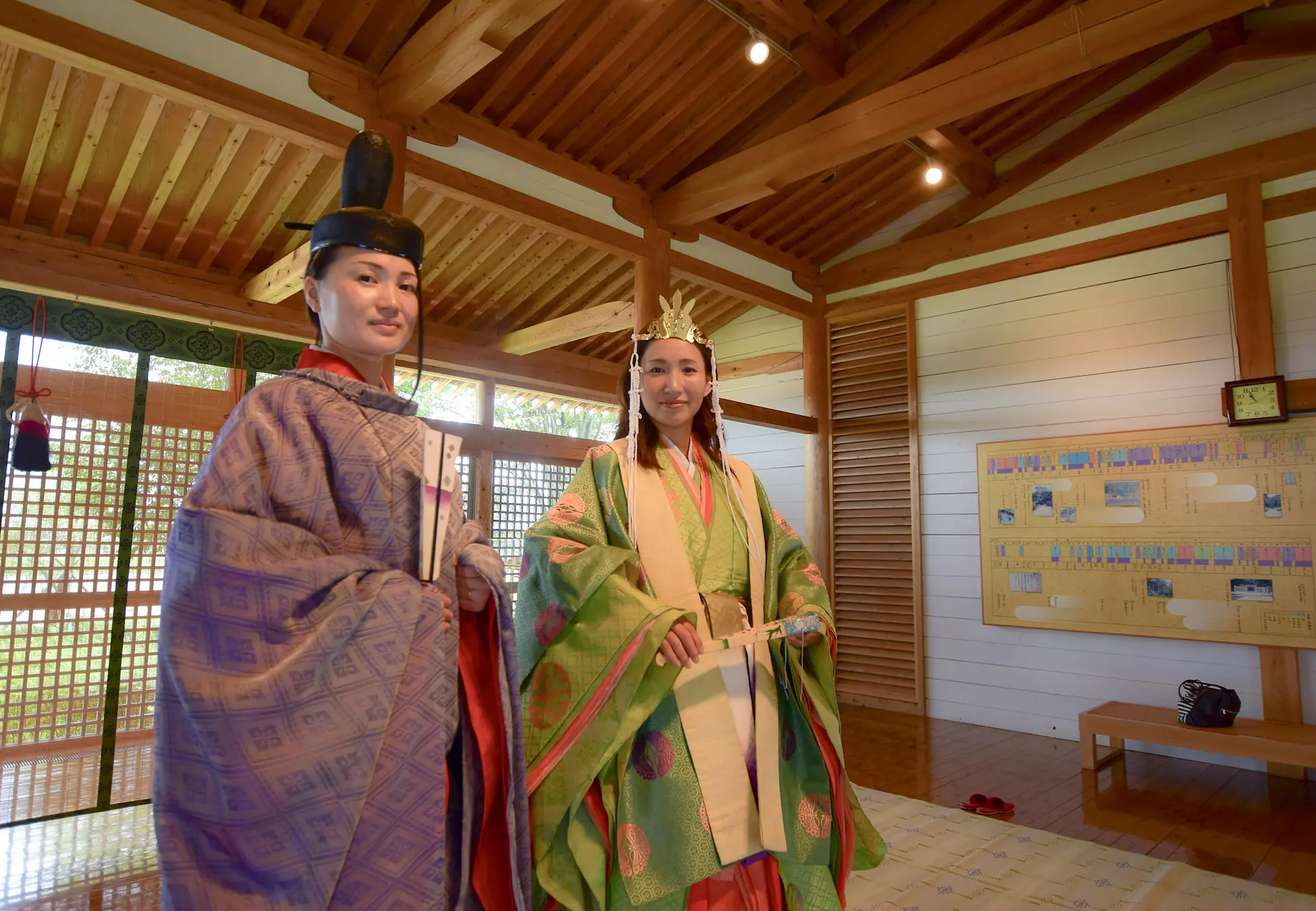 多気郡明和町斎宮が最も栄えた平安時代の体験ができます。建物は平安時代の貴族の屋敷「寝殿造」をモデルにしており、当時の建築技術を活かし、部材の組み立てに釘を使用していません。 館内では、当時の年中行事や技術・文化を学べる体験講座のほか、十二単・直衣の試着体験も実施しています。また、盤双六や貝覆いなど、古代の遊びも体験することができます。