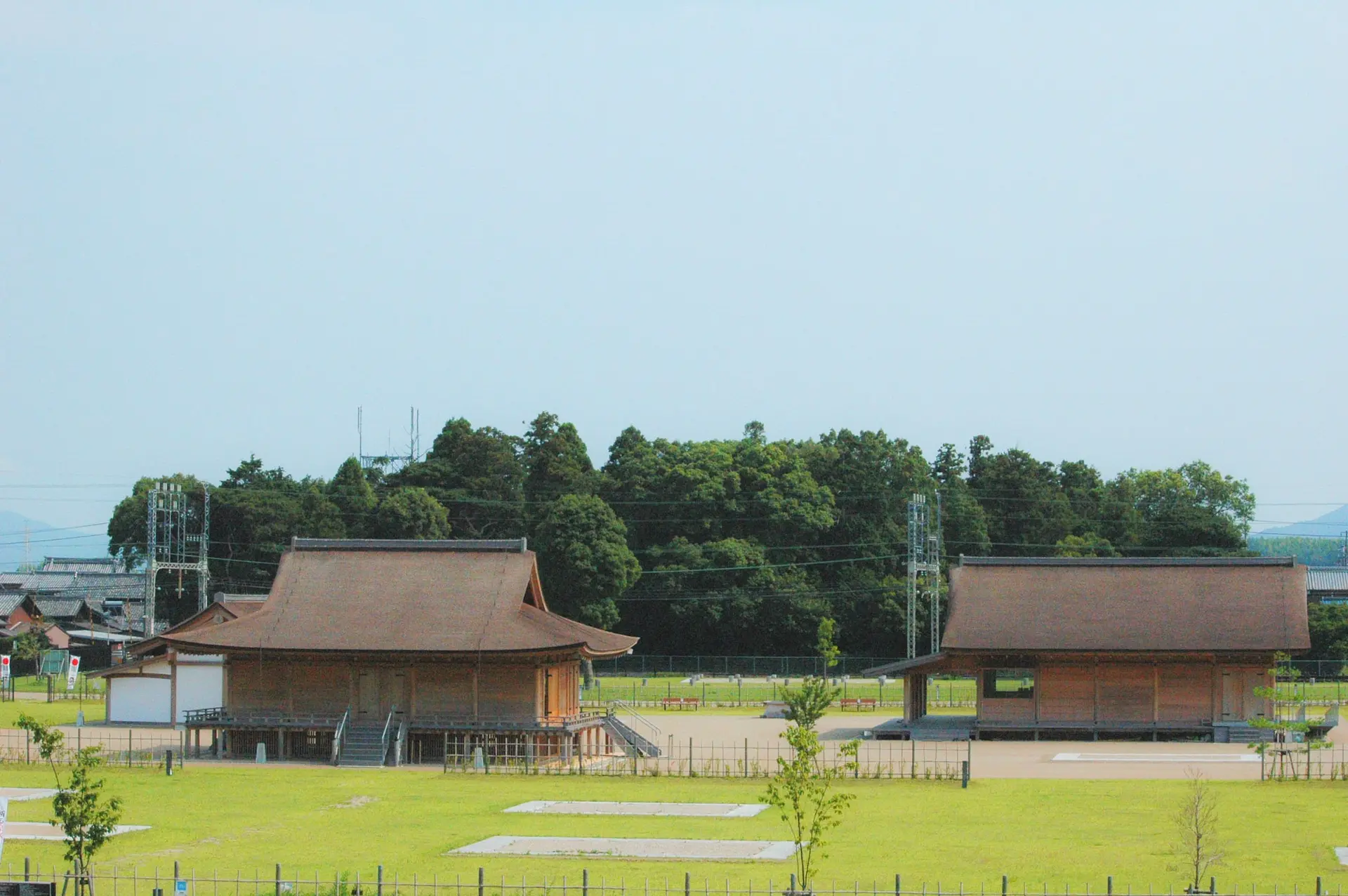 多気郡明和町史跡斎宮跡に三棟の平安時代の建物「斎宮寮庁」が復元されました。古代建築の魅力を伝え、いにしえの斎宮の姿を再現しています。 斎宮の役所「斎宮寮(さいくうりょう)」の長官のもと、儀式や饗宴に使用されたと考えられる三棟の建物があります。その背景には、平安時代の古代建築の世界が広がります。