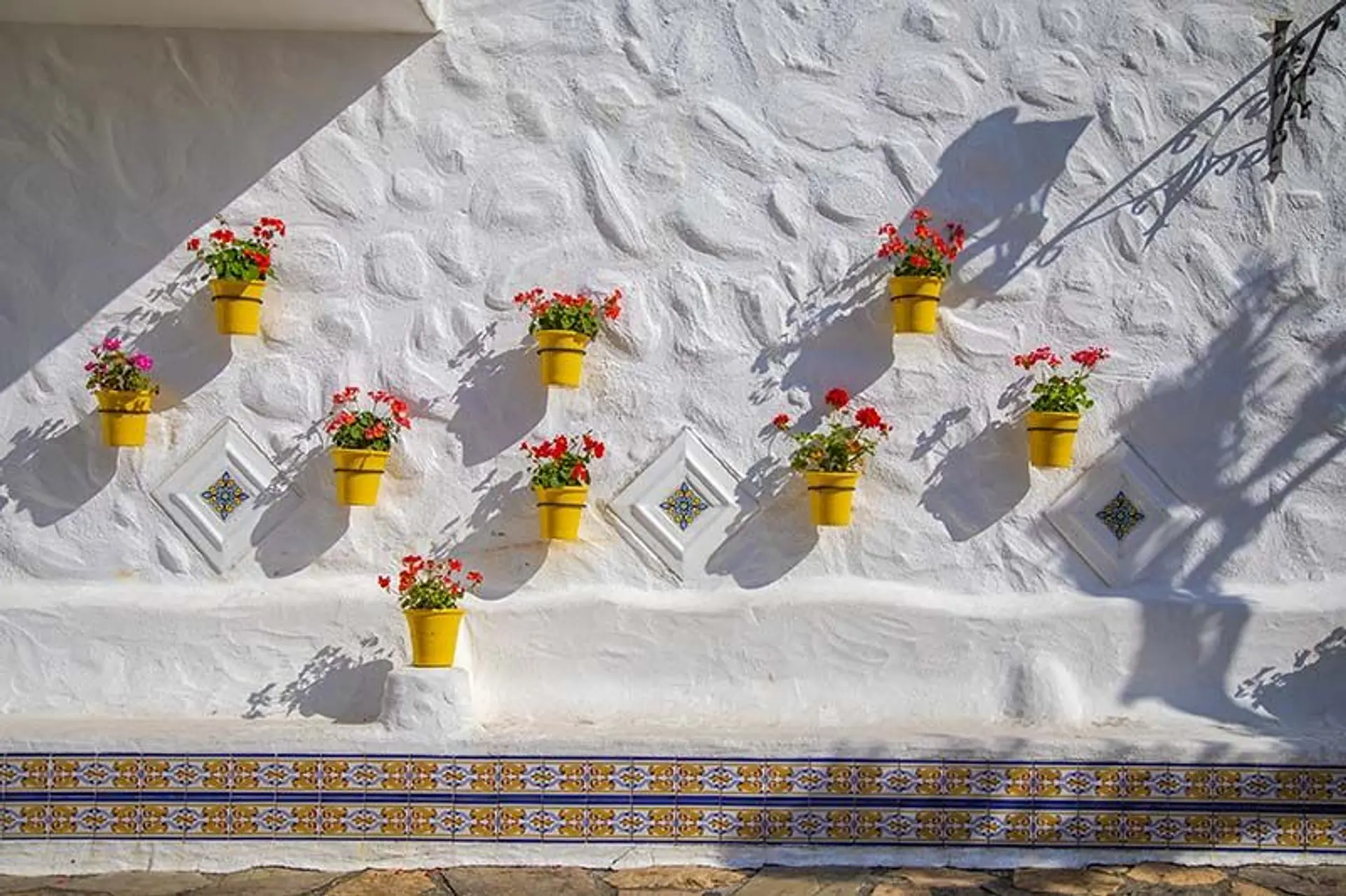 黄色い鉢植えが壁に付いてるのが可愛いですね。地中海では日常的な光景なんだとか。