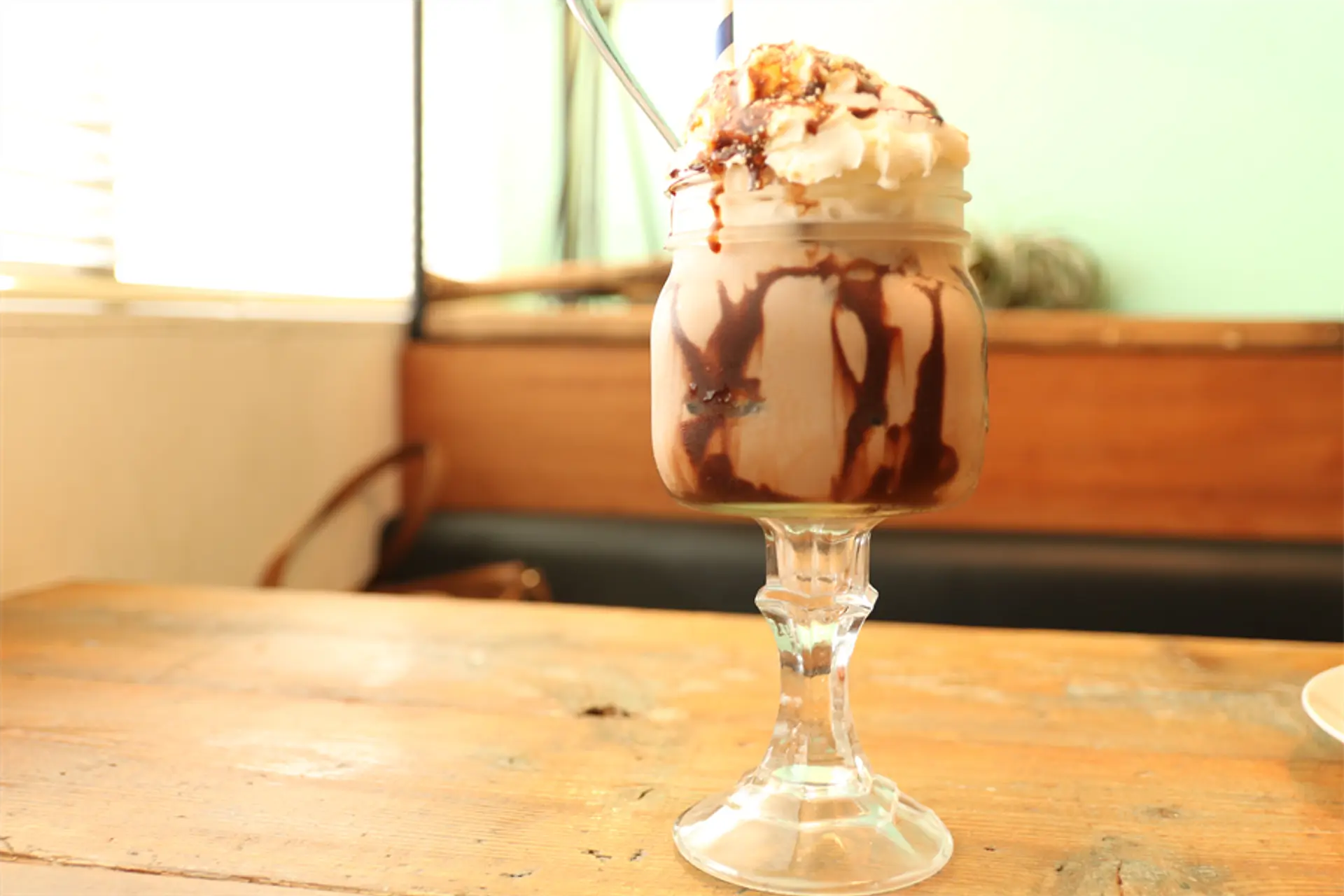 アイスココアにたっぷりのホイップがのっていて甘い物好きの方にオススメな一品です!