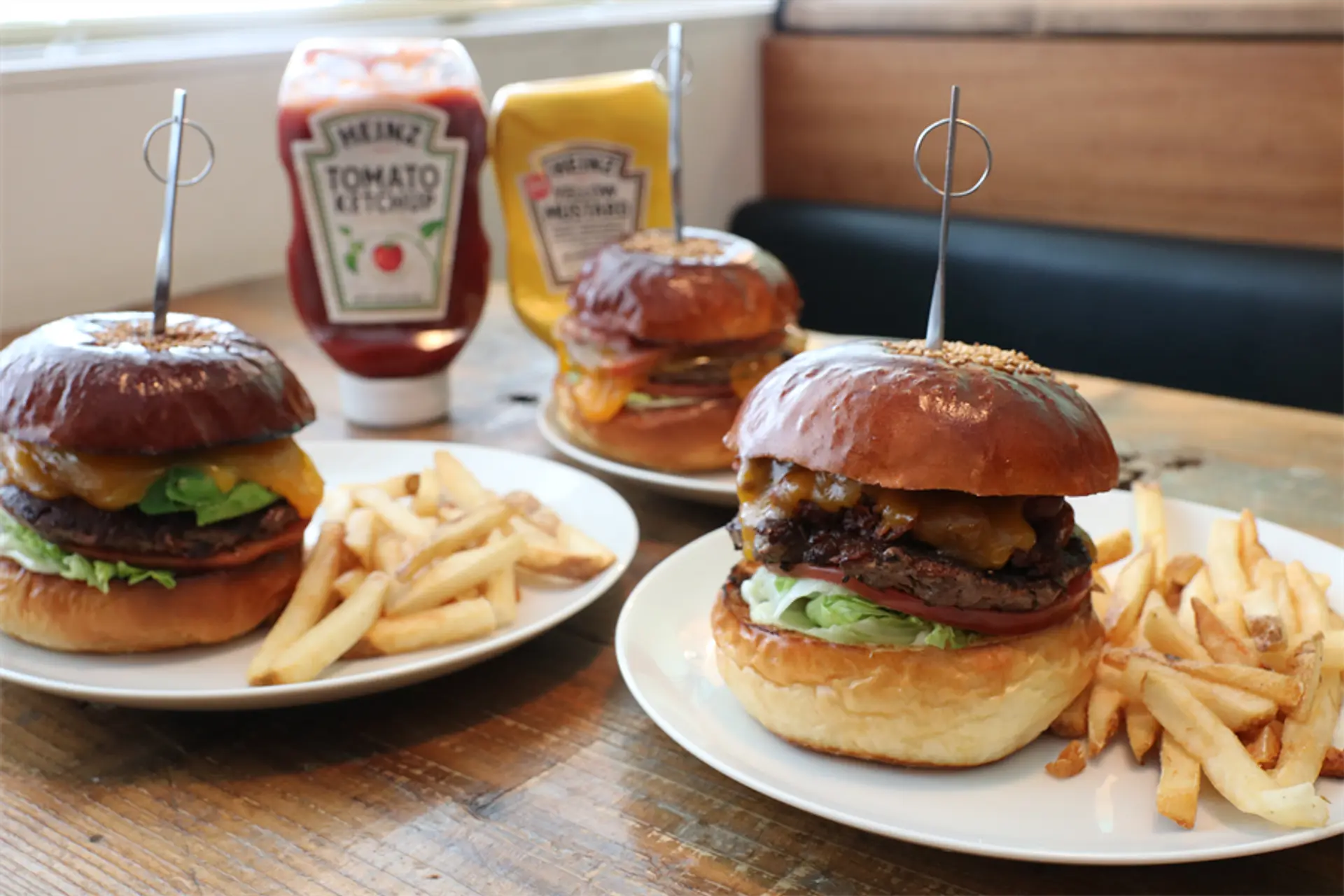 今回は特に人気のある3つのハンバーガーを注文しました。どのハンバーガーもボリューミーで、パティは牛肉100%のジューシーなお肉でした。