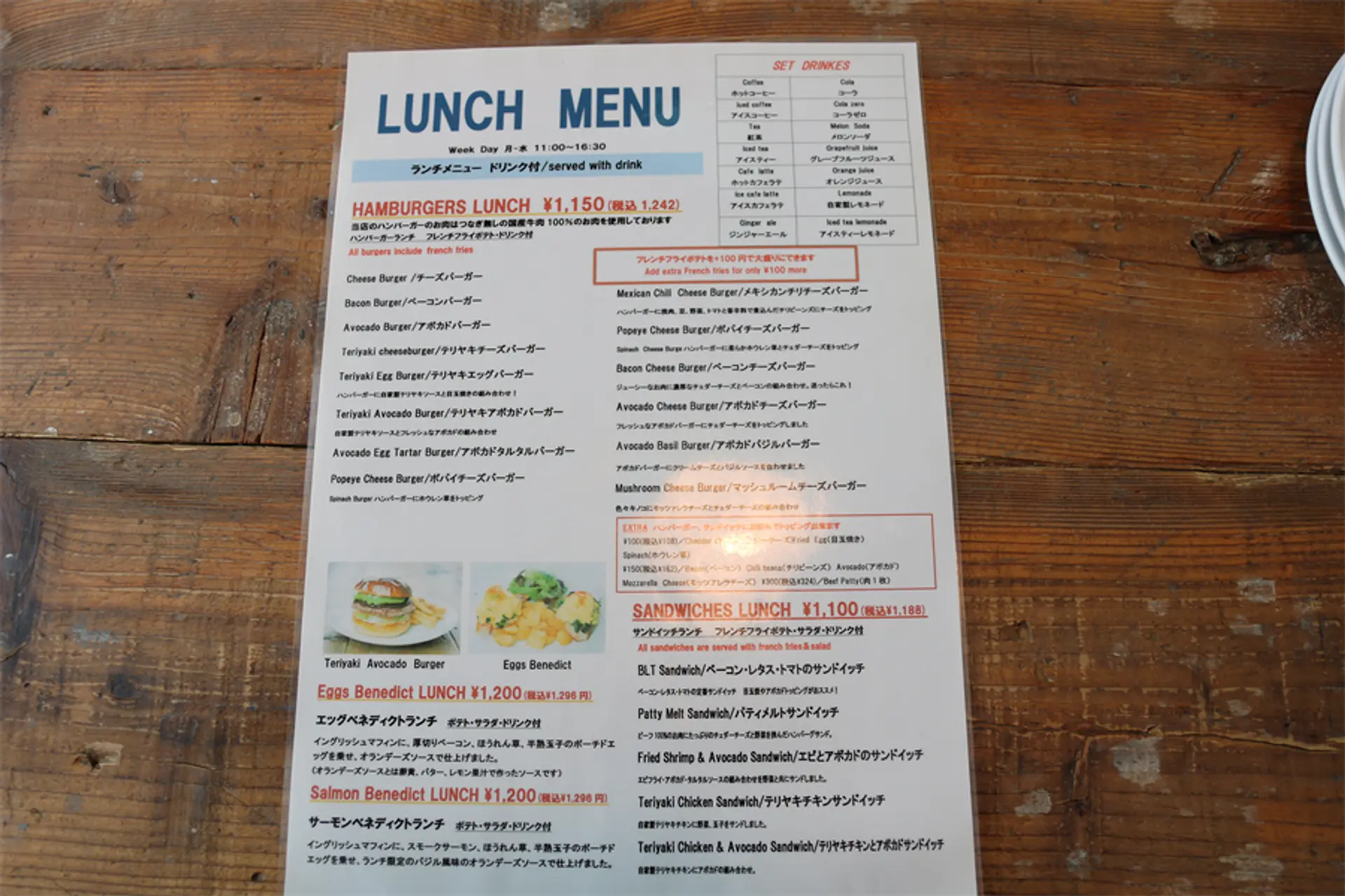 メニューにはハンバーガー類、サンドイッチ類、フレンチトースト類、パンケーキ類などたくさんの種類があり、とても迷ってしまいますね。