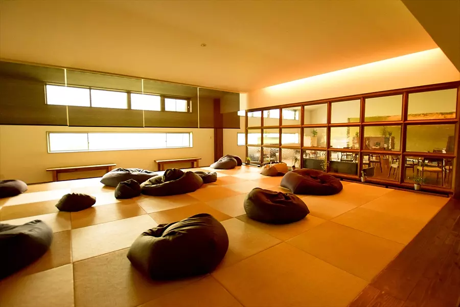 広々とした休憩スペースには、体がふんわりと沈み込むビーズクッションが並んでいて、まさにリラックスにぴったりの空間✨