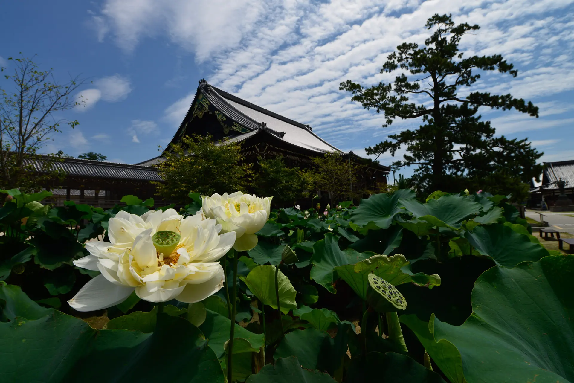 蓮寺としても有名で、見事な蓮池や、境内の各所にて様々な種類の蓮を楽しむことができます。