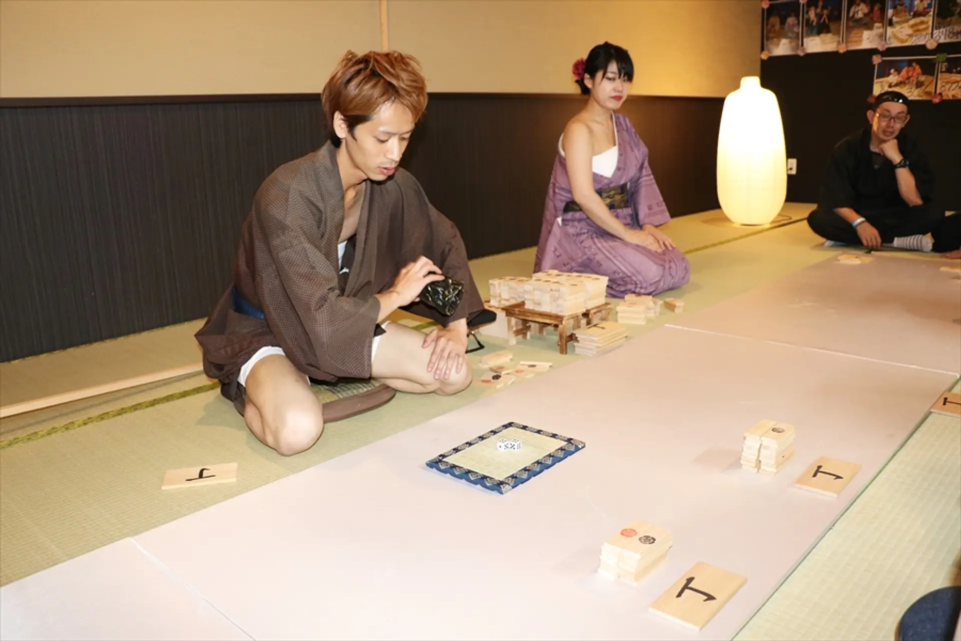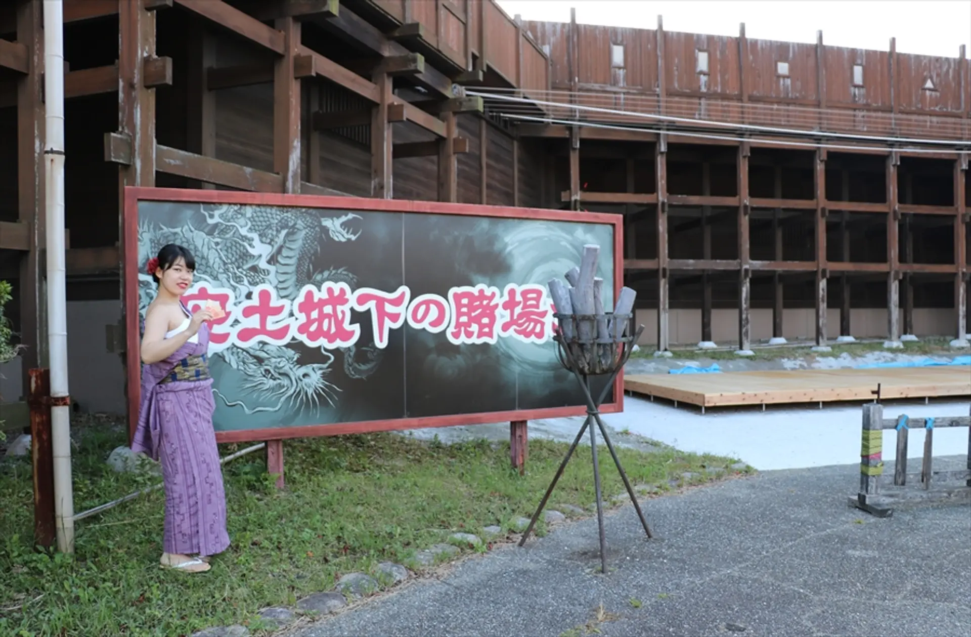 こちらのかっこいい姐さんが案内してくれたのは「安土城下の賭場処」。木札を賭けて真剣勝負です。さっそく体験してみたいと思います!
