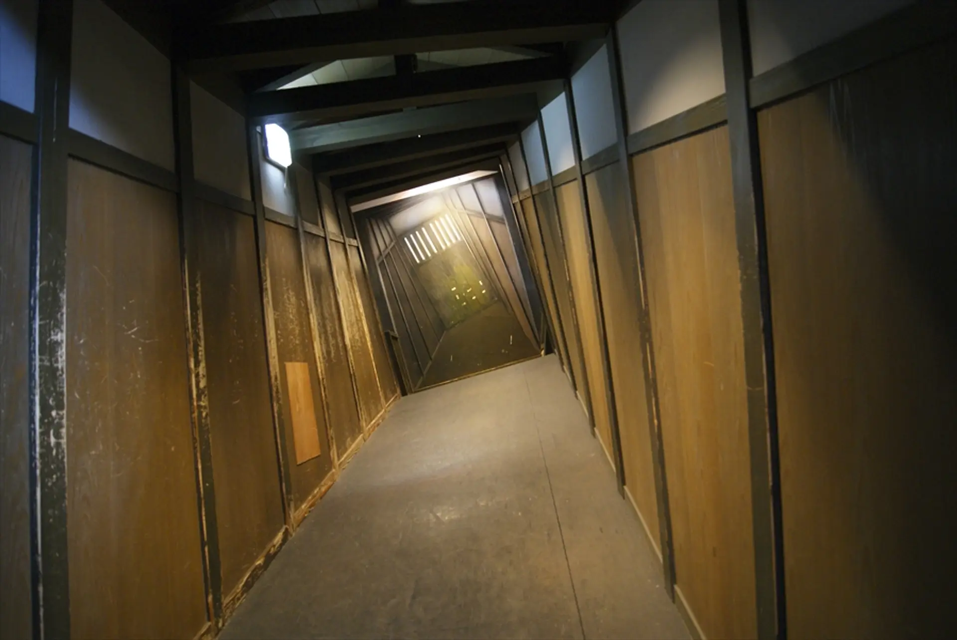 ここは「忍者からくり迷路」。11ある仕かけを突破しないと外へ出ることができない迷路です。