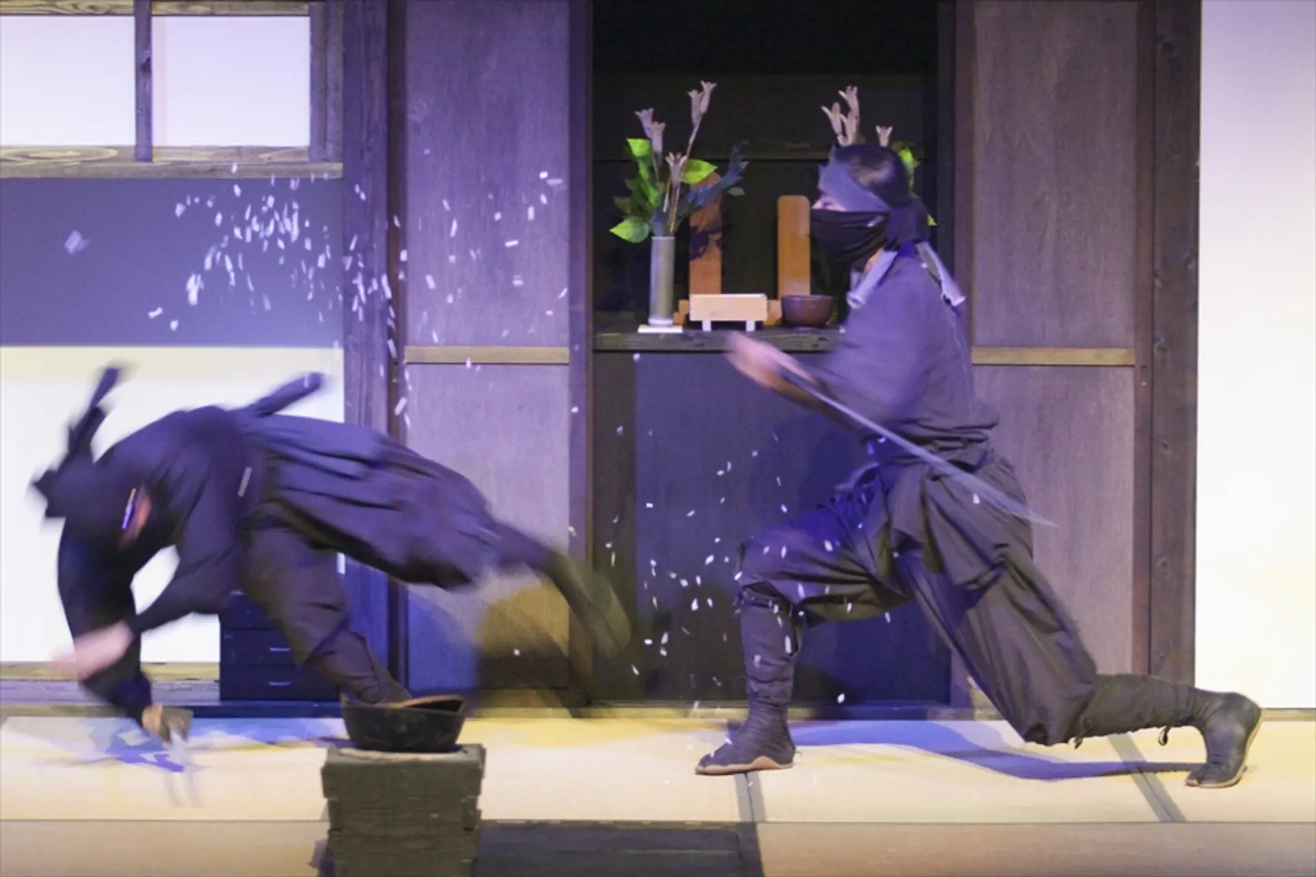 こちらは「大忍者劇場」での迫力あるアクションシーンの一コマ。目を離すことができないストーリーの中にも随所に笑いがあって、楽しいひと時を過ごせました。