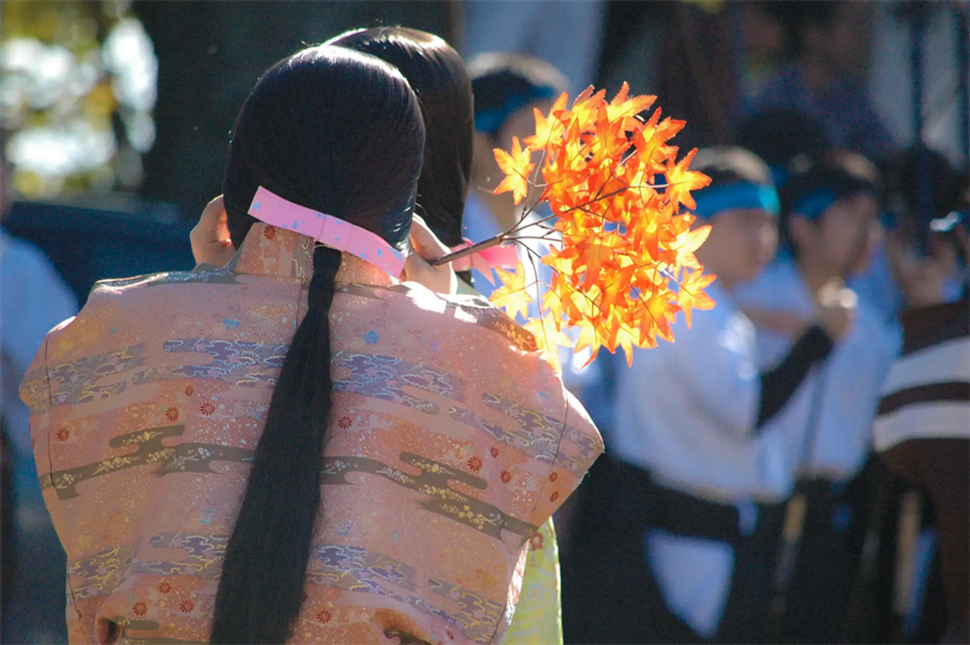 武者行列に参加する侍女たち。秋の陽の光がやわらかく降り注いで綺麗です。