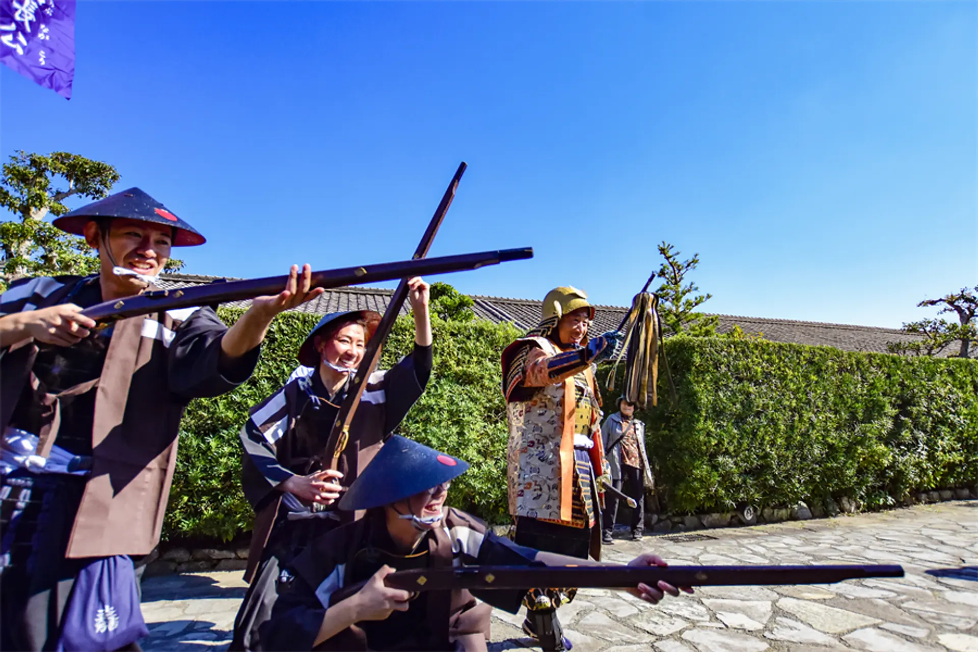 「バーン!」鉄砲隊が格好いいポーズを決めてくれました!ものすごく息の合ったグループで、可愛くてノリもよくて、撮っているこちらまでつられて笑顔になりました。