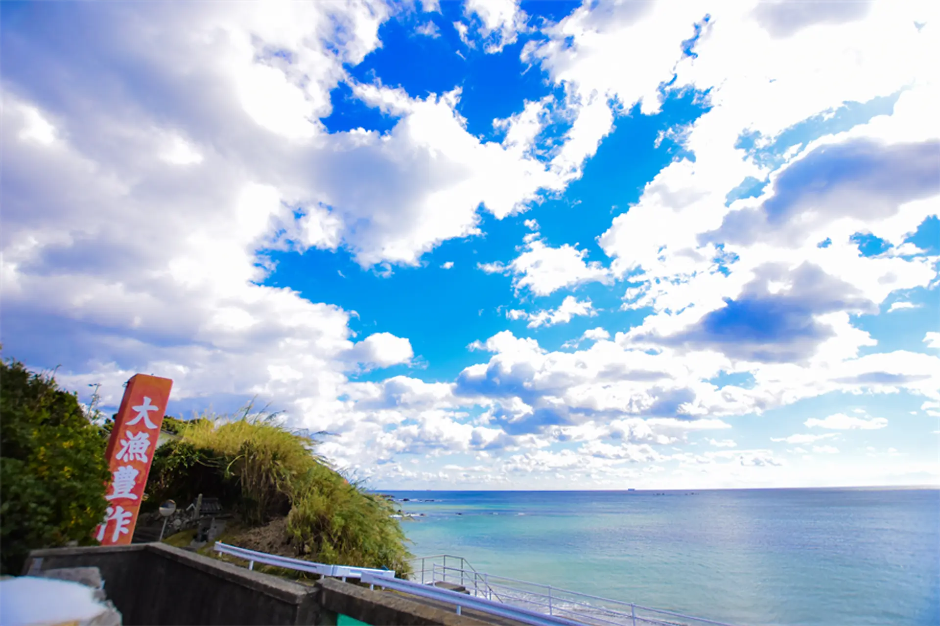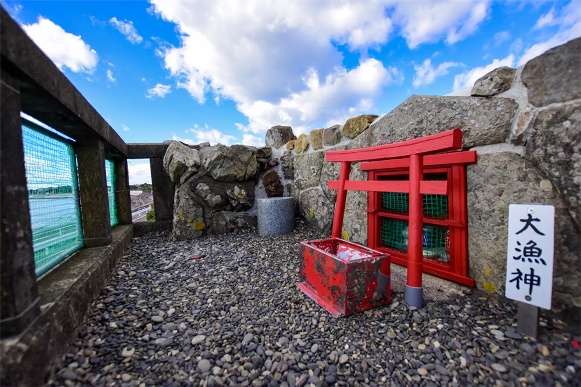 漁師さんたちがその日の海の状態を確認するために登っていた「日和山(ひよりやま)」の上にあります。現在は石垣が積み上げられ、階段になっているので登りやすいです。ここからの見晴らしは素晴らしい!大漁神さんにお参りしてから、しばらくこの場所で海を見ながらぼーっとしていました。静かで、海は綺麗で、なんだか別世界に行ったみたいな時間でした。
