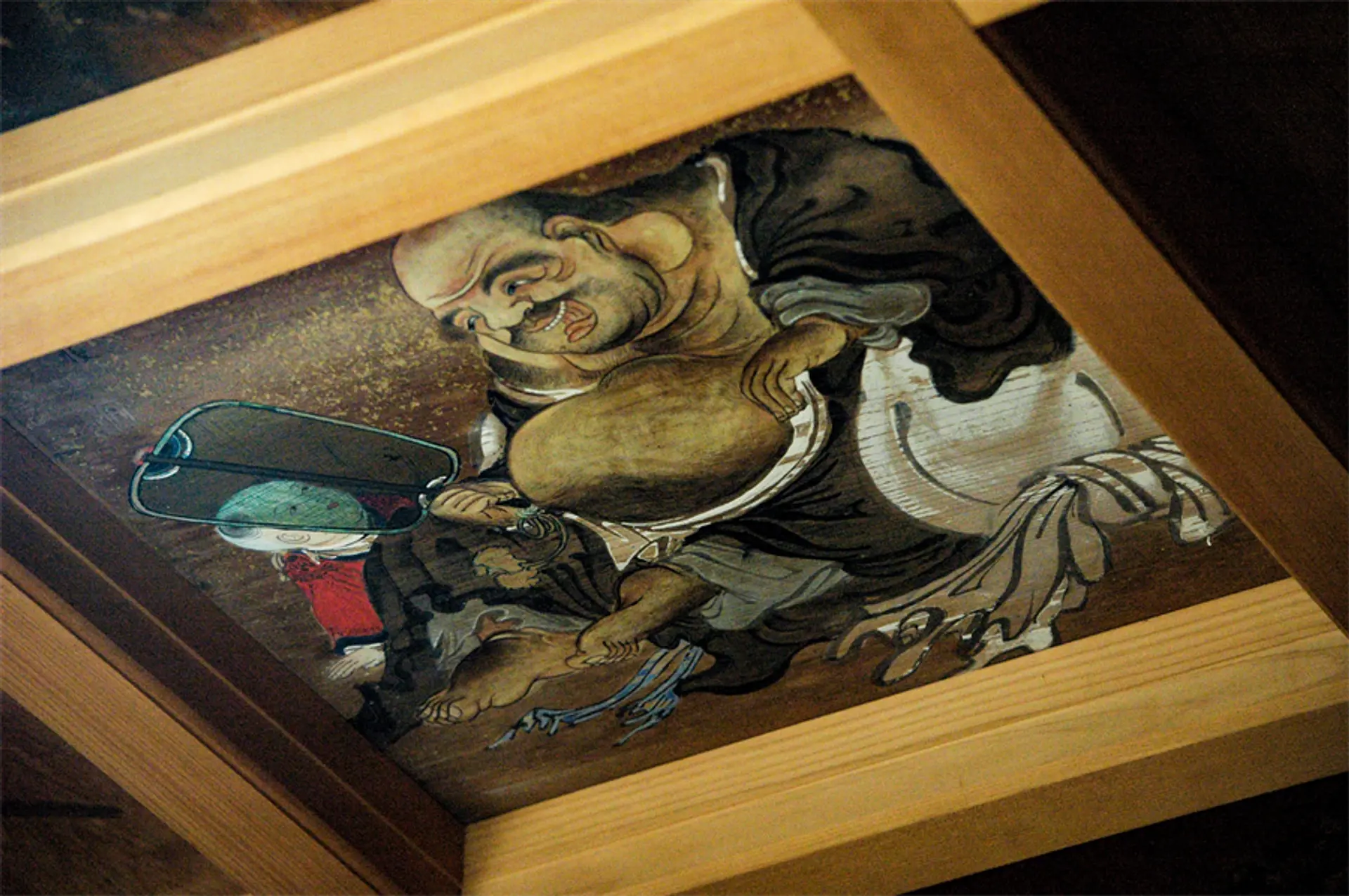 なお、絵天井を鑑賞したいときには、敷地内の社務所を訪ねて、管理を担当している方にひと声かけてみましょう。片田稲荷神社には常駐する宮司さんはみえませんが、地域の方々がおよそ10年ずつ交代しながら担当して、神社の整備や維持管理を続けています。