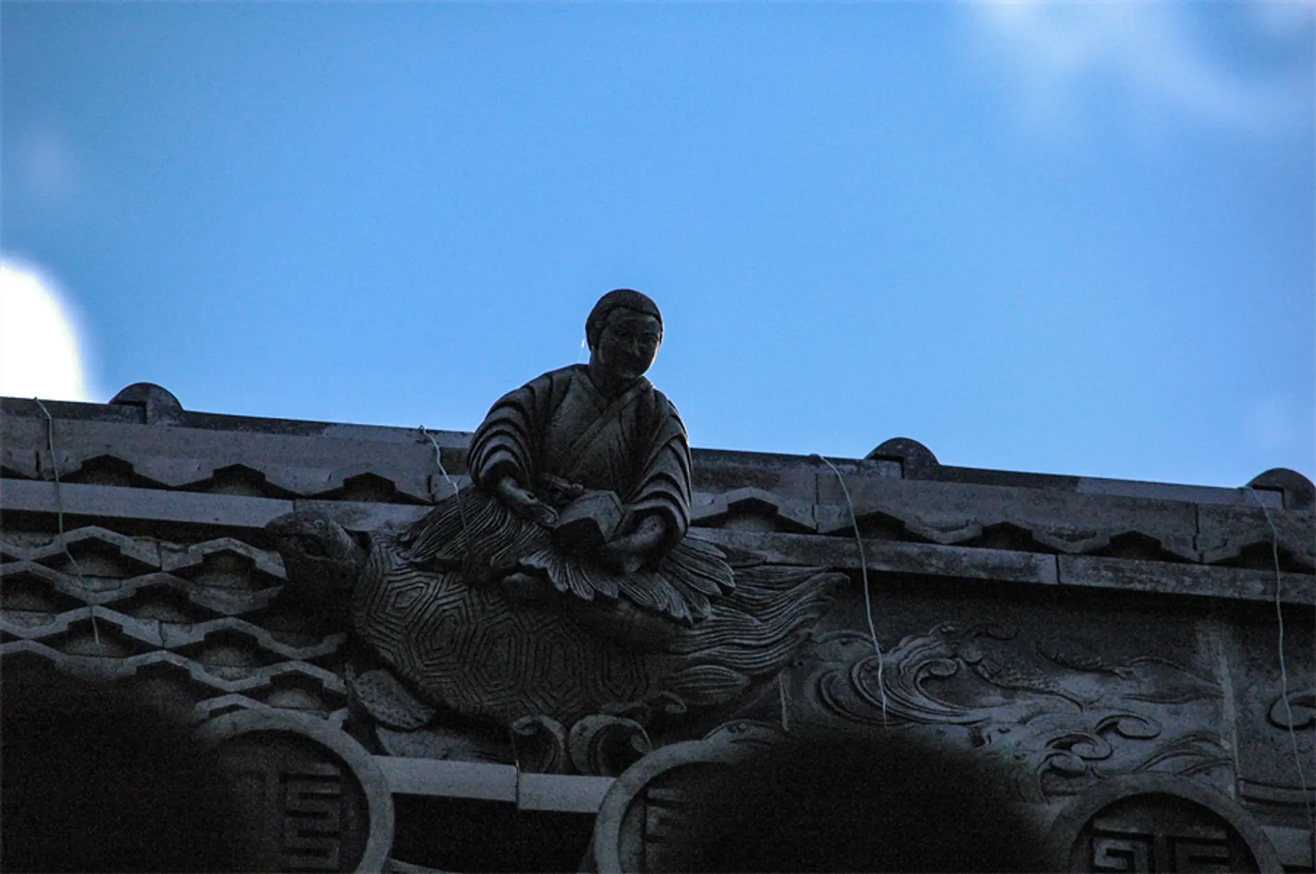 ウミガメの背中に乗った浦島太郎です。表情が凛々しい!