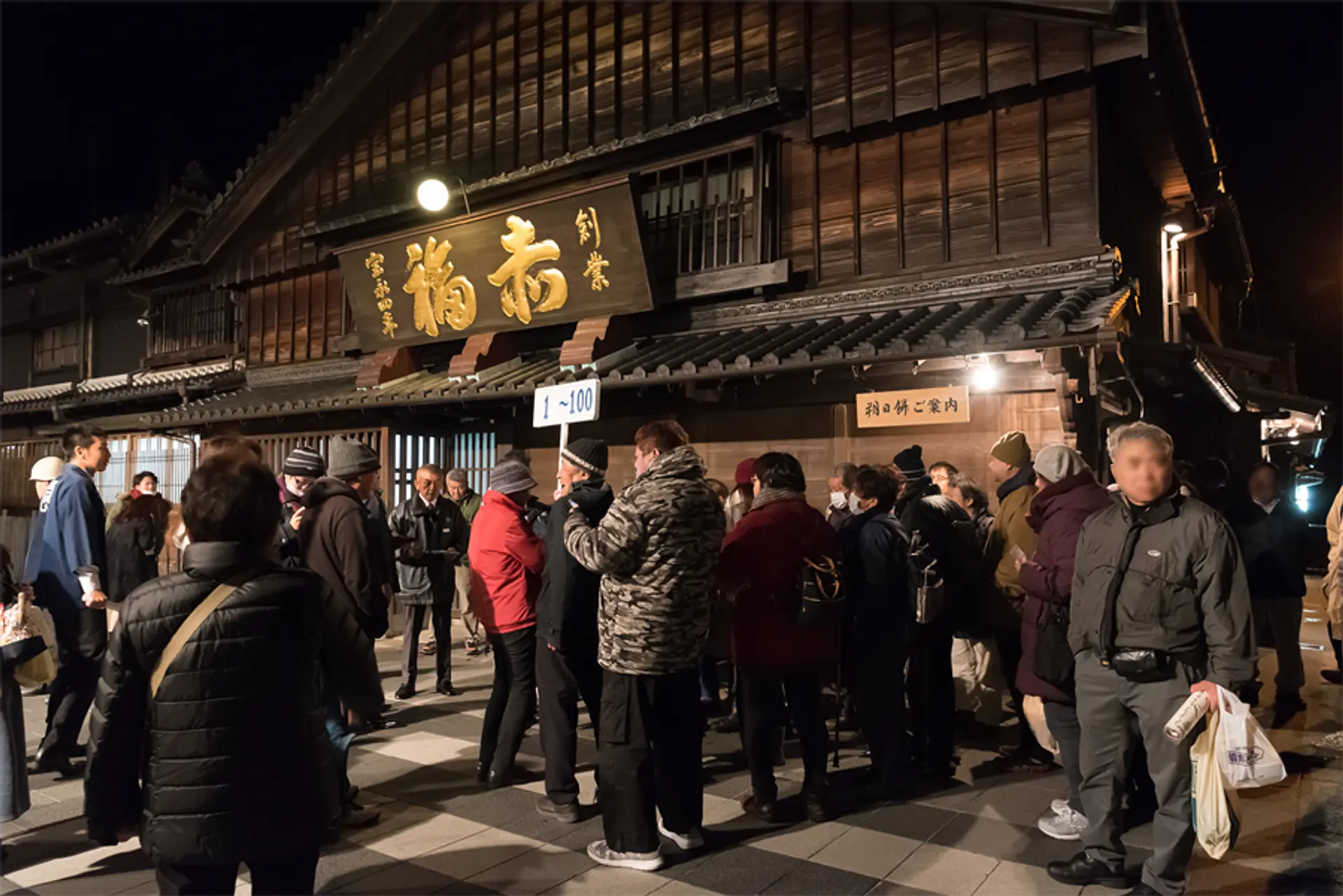 人気のお餅が販売される月はこの行列が何百メートルも続き、待ち時間が数時間になることも。