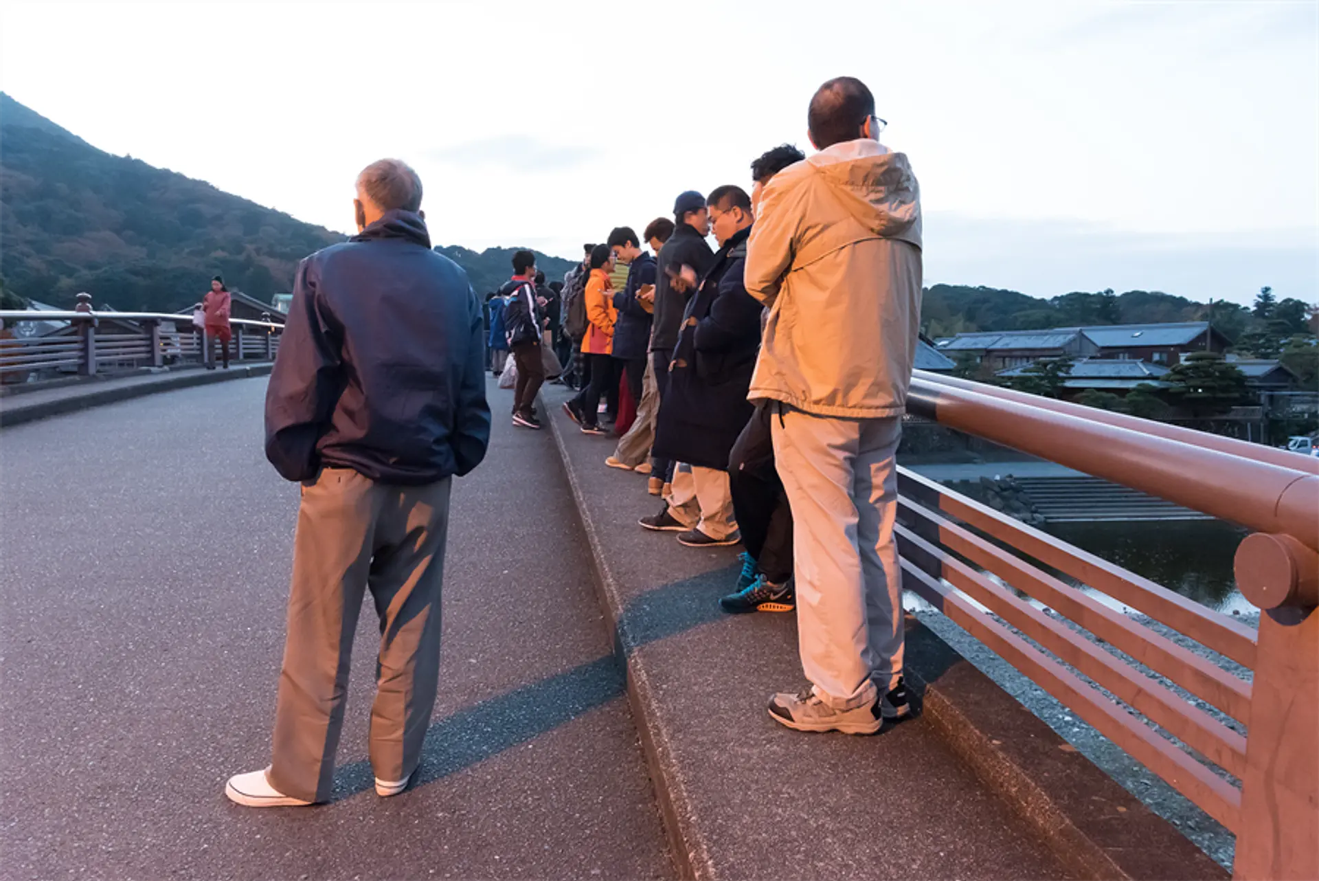 丁度、今の時期は宇治橋からの日の出が拝めるとあって、多くの参拝者と一緒に朝日が昇るのを待ちます。