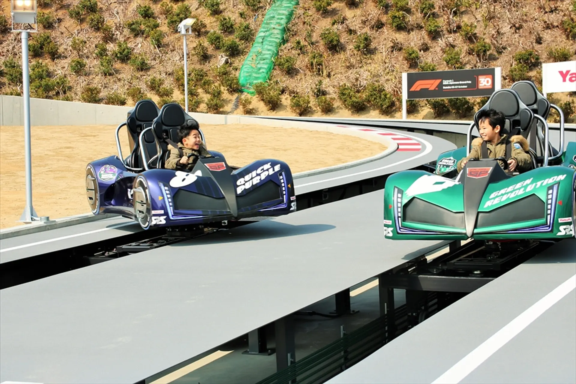 鈴鹿サーキットに新アトラクション「DUEL(デュエル)GP」が登場!世界初の操縦できるバトルコースターに大人もこどもも夢中!最高時速40kmの疾走感や、ハンドル操作を誤るとスピンするスリルが味わえます。「DUEL(デュエル)GP」の魅力をたっぷりご紹介!