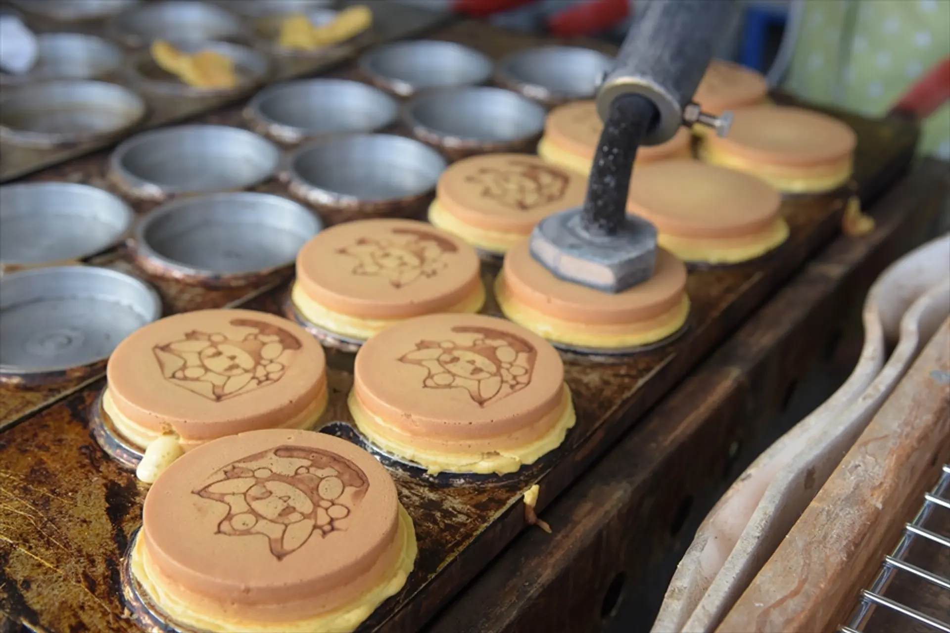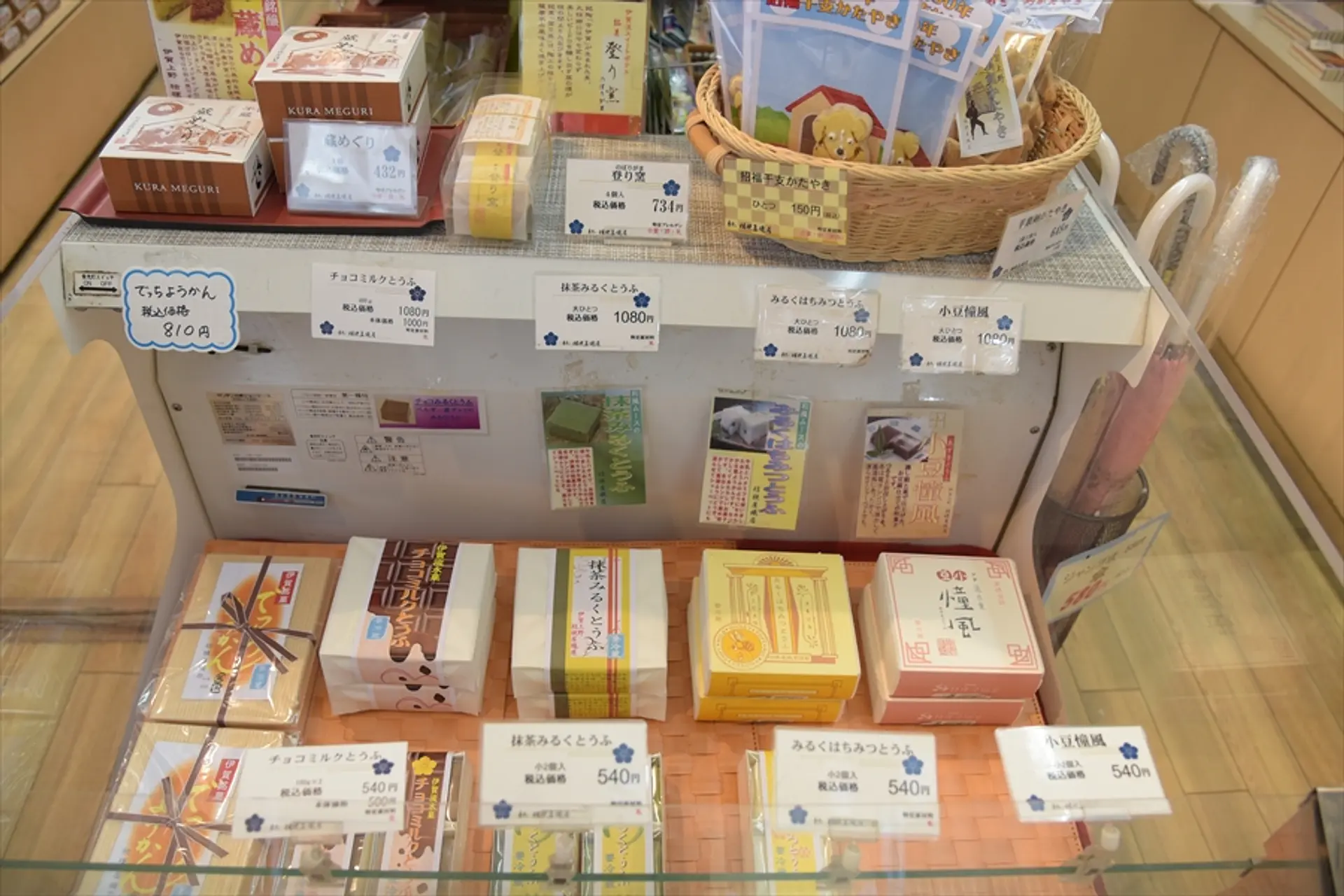 入り口前で売っている「大判焼き ひしみちゃん」120円。伊賀産の「菱の実」の粉末と、伊賀産の鶏卵を生地に練りこんであります。