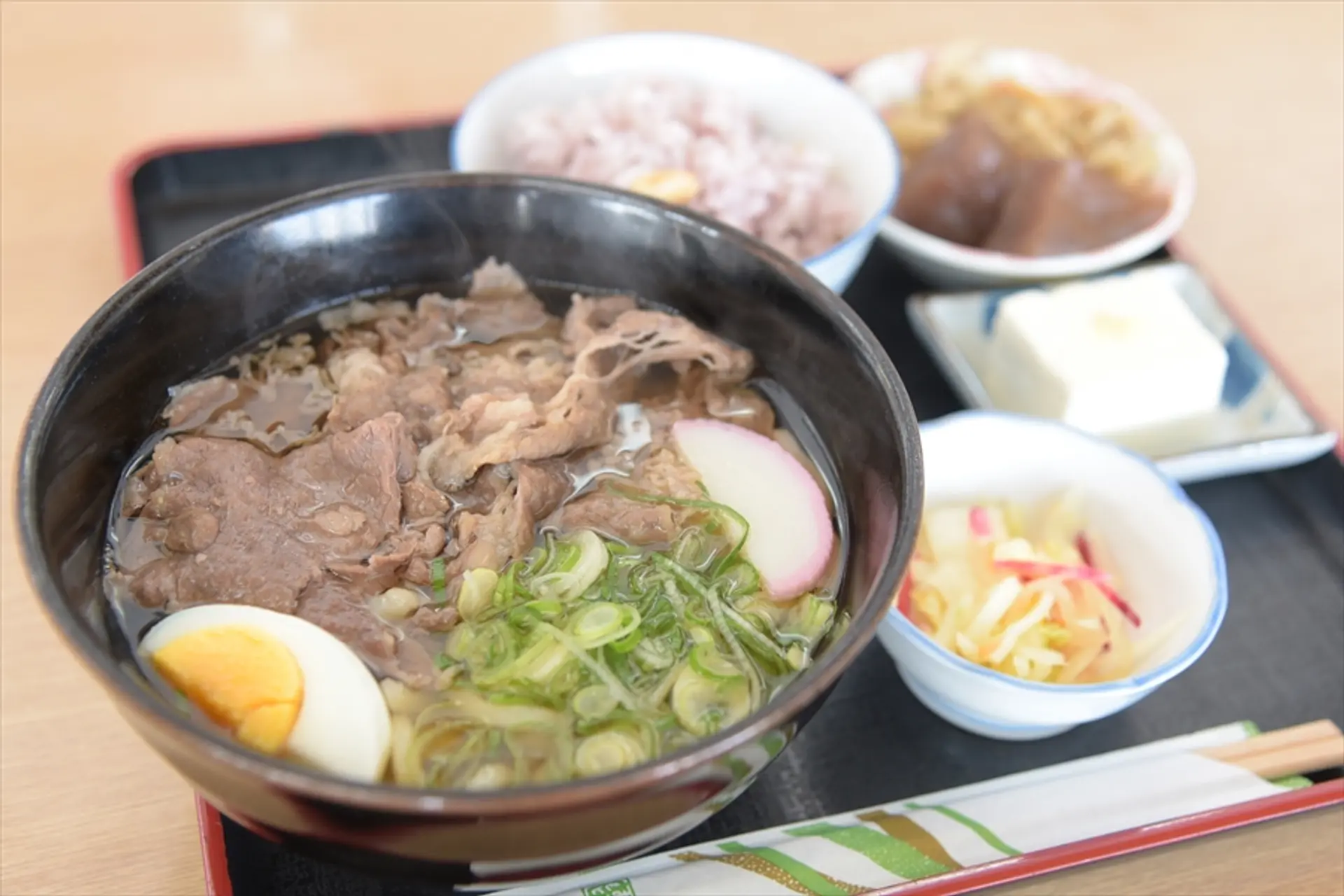 一番人気!「伊賀牛うどん」。こちらは定食で860円。単品だと700円、うどんがハーフになるミニ定食も700円です。