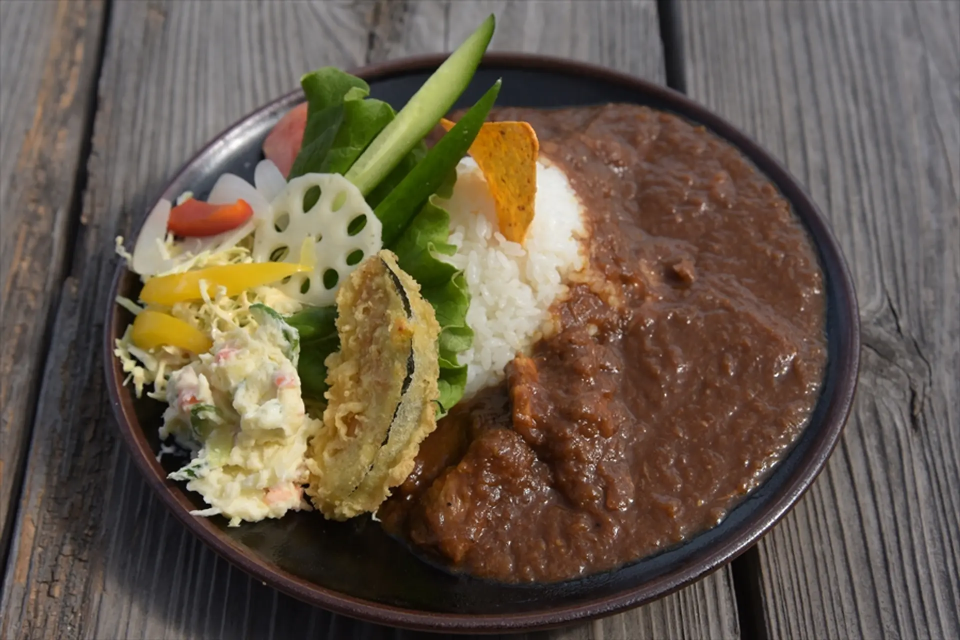 手間暇掛けて丁寧に作るカレーは、ターメリック、クミン、コリアンダー、チンピ、フェンネルなど、30種近い香辛料が入っています。仕上げのトッピングの手間も惜しまず、季節の野菜などを彩りよくたくさん乗せてくれます。