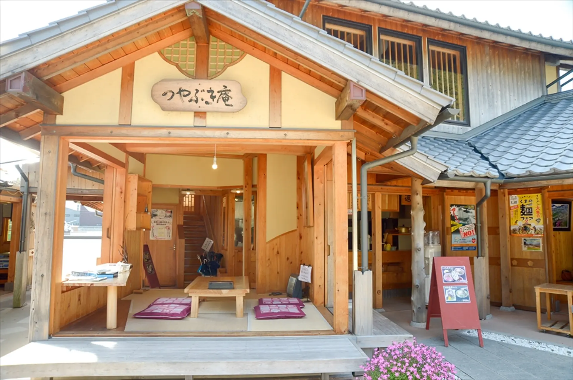 おすすめは、看板メニューの「お綱茶屋セット」(いざなみ米うどん+いざなみ米おにぎり)550円(税込み)。古代米「いざなみ米」を混ぜてつくられるお綱茶屋だけの限定品。いざなみ米を存分に味わえます。