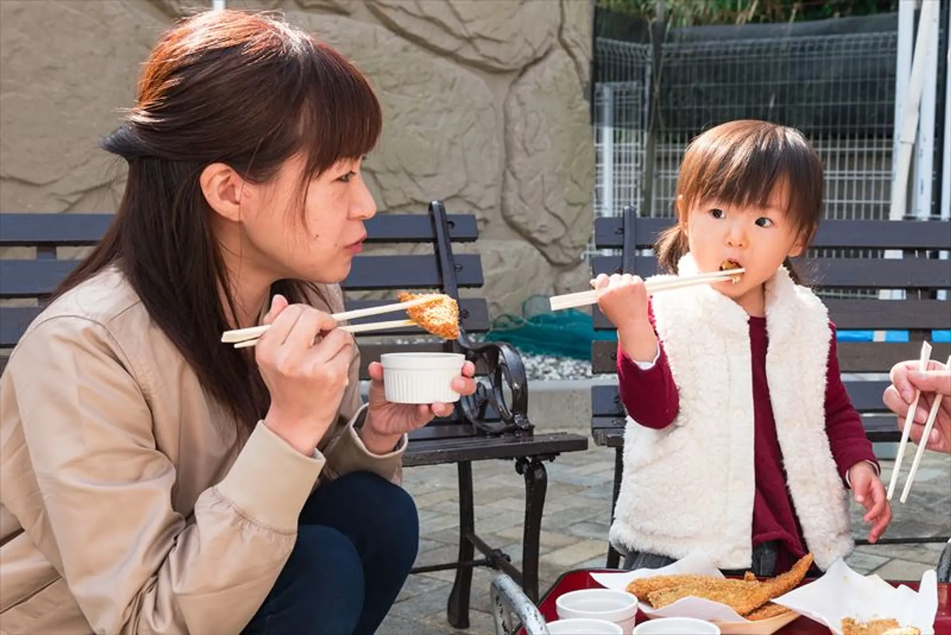 今回は撮影用にアジフライも作ってもらいました。お腹をすかせた芙月ちゃんは揚げたてのアジフライを頬張ります。