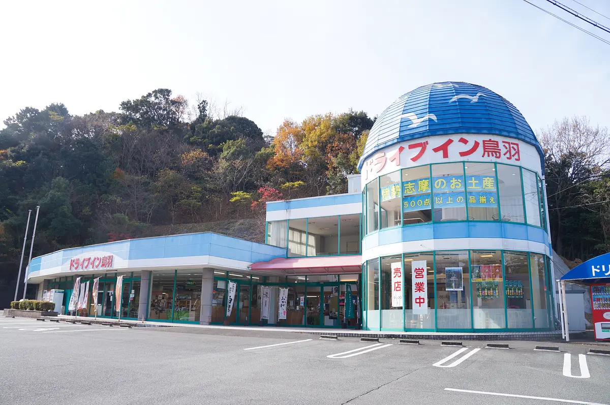 伊勢自動車道伊勢ICから伊勢二見鳥羽ラインを通って鳥羽方面へ向かって5分程度。伊勢と鳥羽を結ぶ“天空のドライブウェイ”「伊勢志摩スカイライン」の鳥羽入り口にあるのが「ドライブイン鳥羽」です。 大きなドーム型の屋根の建物が目印!広い駐車場には大型の駐車スペースもあり、観光バスの利用客でも賑わいます。