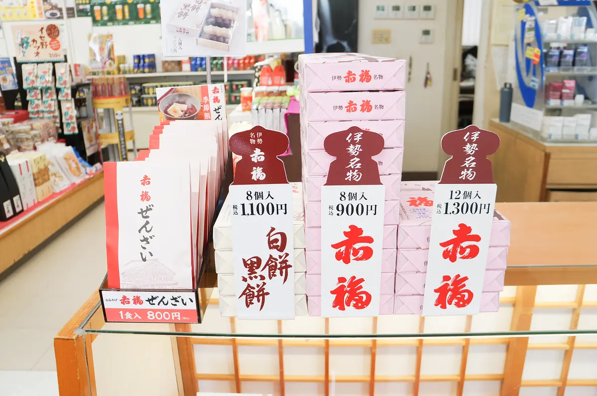 伊勢志摩土産といえば外せない「赤福」(12個入り1,300円・8個入り900円)。 鳥羽で赤福を買えるお店は少なく、ドライブイン鳥羽でも一番人気の商品だそうで、お客さんの2割は買っていくとのこと。