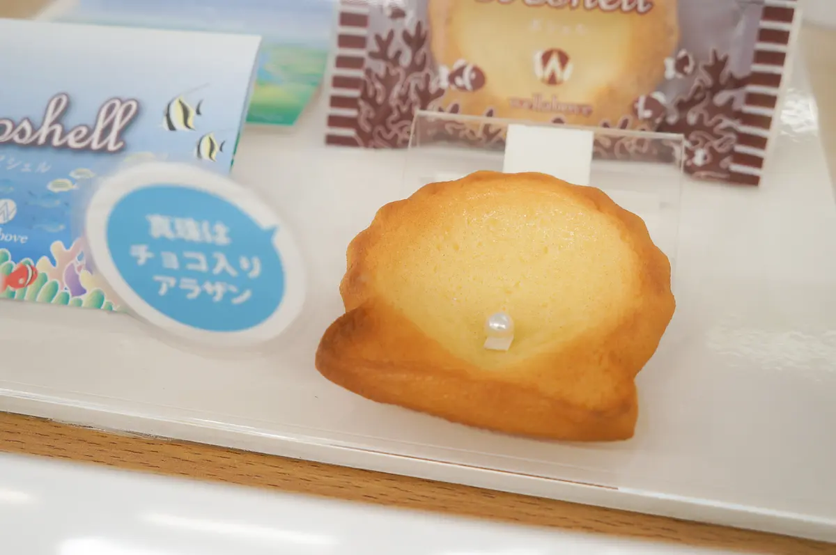 もう一つユニークなのが、「ボシェル」(2枚入り400円・5枚入り1,200円・10枚入り2,400円)。真珠貝から抽出した良質な天然カルシウムを含んだクッキーの中に、真珠貝に見立てたホワイトチョコレートが入ったお菓子で、かわいい見た目も喜ばれること間違いなしです。