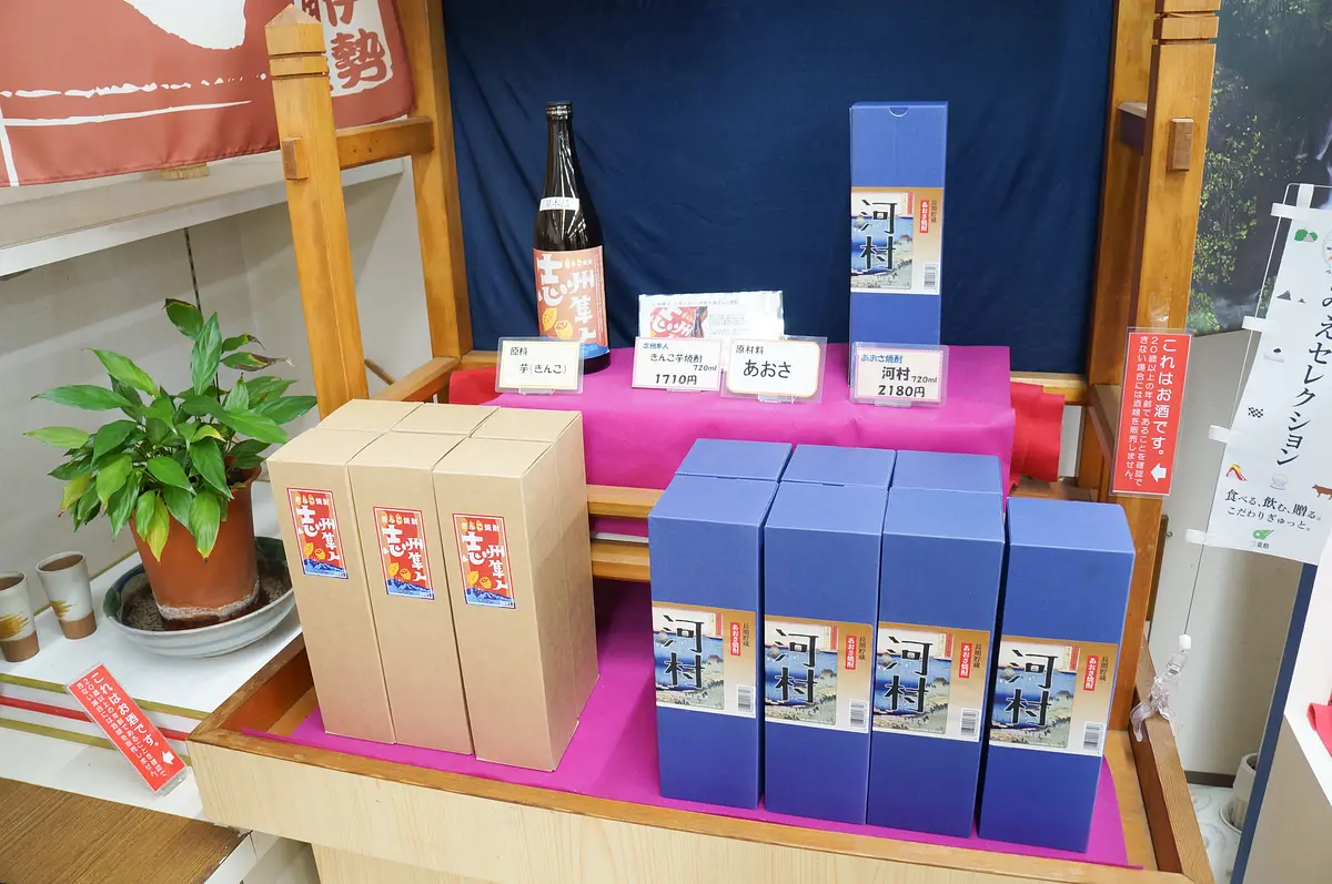 「志州隼人 きんこ芋焼酎」(720ml 1,710円)は志摩地方で作られている地元産のさつまいもを使った干し芋「きんこ芋」から作られた焼酎で、2013年の伊勢神宮式年遷宮奉納品にも選ばれています。