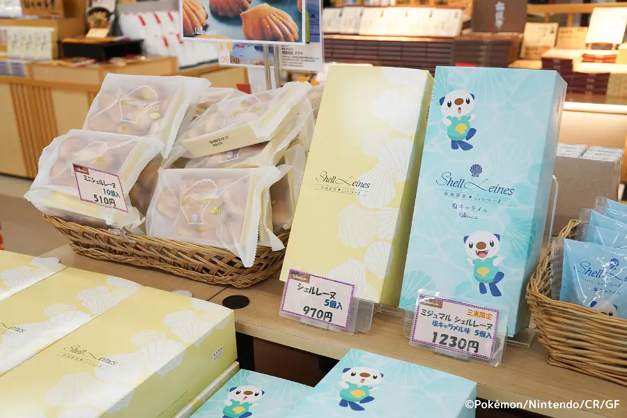 伊勢志摩サミットのコーヒーブレイクにも選ばれた鳥羽を代表する銘菓「シェル・レーヌ」 (5個入り970円)「ミニシェル・レーヌ」(10個入り510円)。