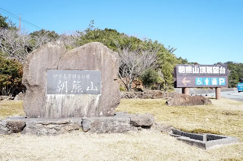 そのドライブコースの終点、「朝熊山」の山頂にあるのが、「朝熊山頂展望台」と「山頂売店」です。広い駐車場は、到着した時点で開放感抜群!