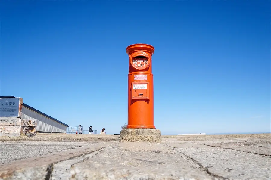 また、広場の一角にはSNSでも話題の「天空のポスト」が佇んでいます。青い空と真っ赤でレトロなポストのコントラストがきれいで、たくさんのお客さんが記念撮影をしていくスポット。