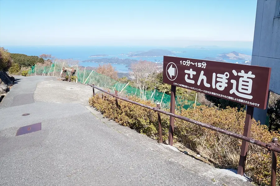 山頂広場からは「さんぽ道」と表された自然豊かな散歩コースが設けられていて、一周10〜15分程度で歩くことができます。山頂の澄んだ空気をめいっぱい味わいながらドライブのリフレッシュとして歩くのにちょうどいいコースです。