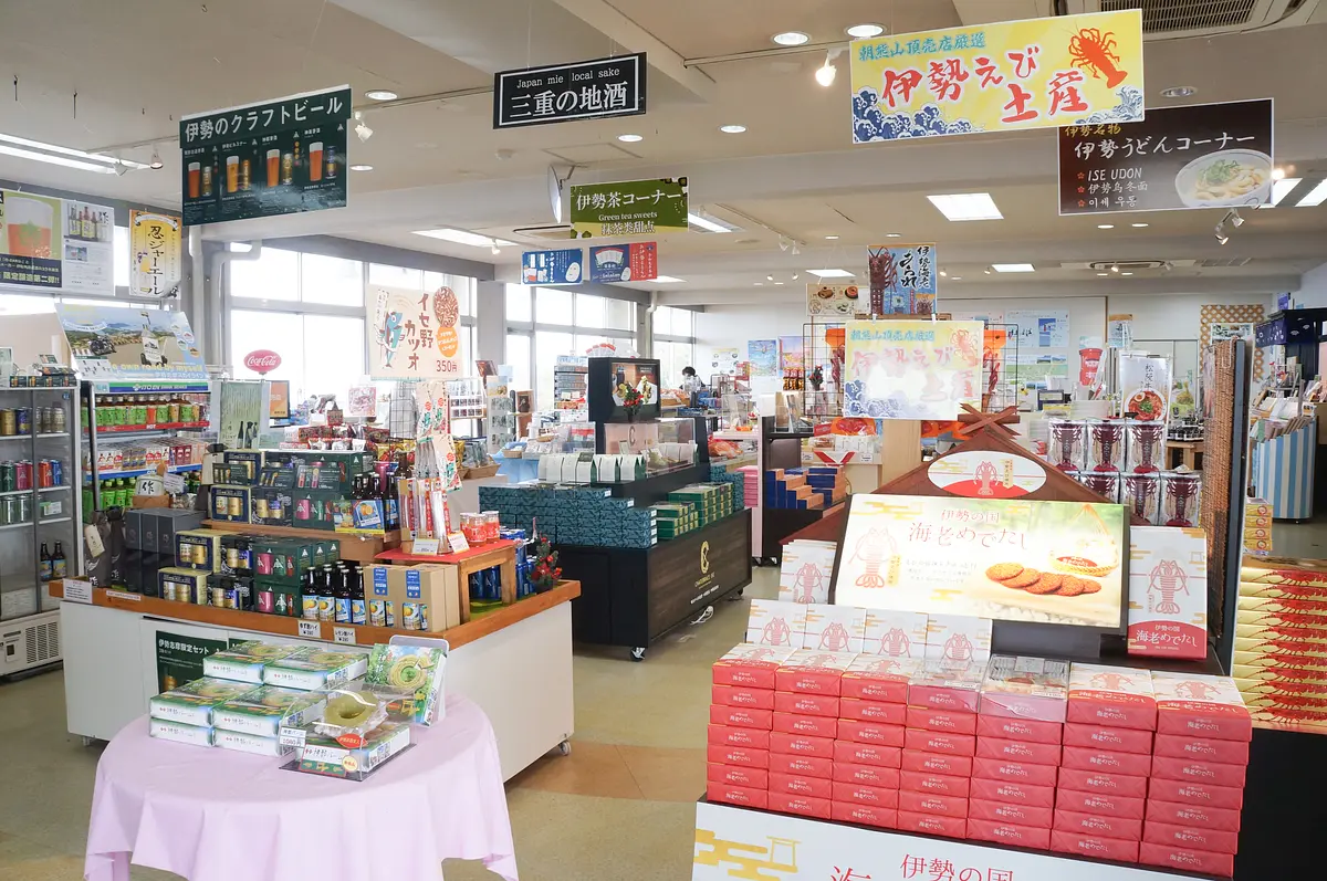 山頂の景色を楽しんだら、次は伊勢・鳥羽・志摩のお土産が集まる「山頂売店」へ。