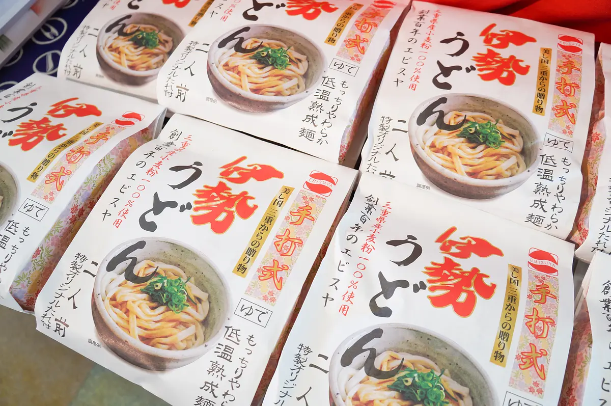 太くもちもちとした柔らかい麺に甘辛いタレが絡む伊勢名物「伊勢うどん」(2食入590円)は定番人気の商品。お店で食べる伊勢うどんの味を家庭で簡単に再現できます。