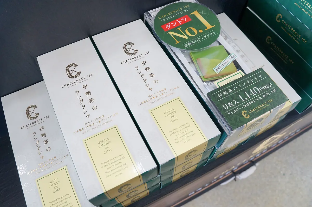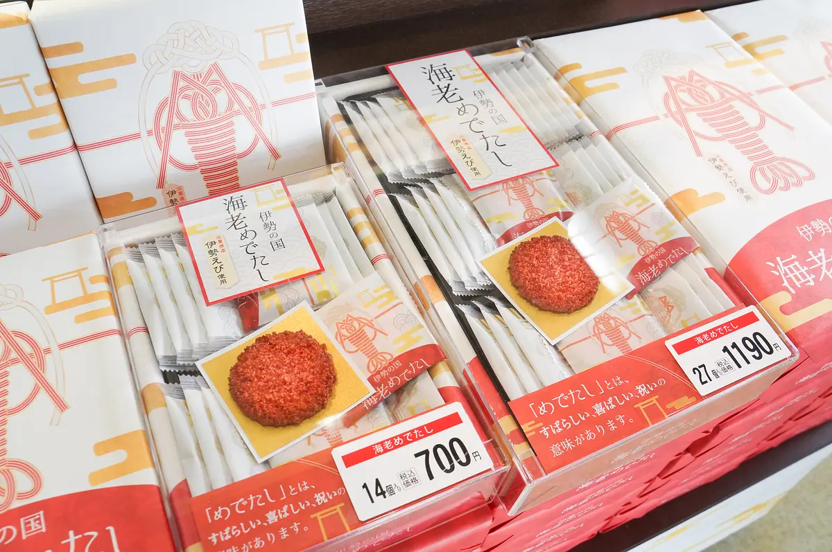 お菓子では、特に「伊勢茶」を使ったものや海老せんべいなどが種類豊富です。