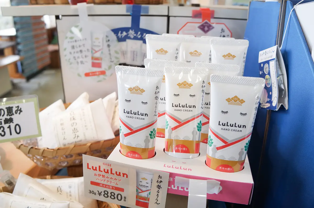 他にも、「お伊勢ルルルンハンドクリーム」(30g 880円)は、伊勢の地で育った榊の葉から抽出したサカキ葉エキスを配合した、しっとりなめらかな手肌に導くハンドクリーム。清々しい木々の香りに癒されます。