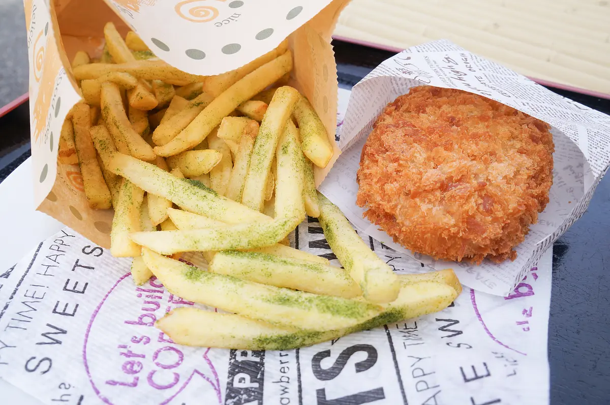 松阪牛の甘みが広がる「松阪肉コロッケ」(330円)や香り豊かな「あおさ塩フライドポテト」(350円)はテイクアウトして車内で食べるのもおすすめです。