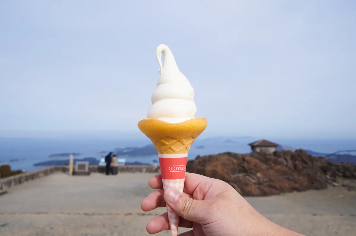 さっぱりとした甘さの「天空ソフトクリーム」(400円)は四季を問わず一年中大人気の一品!雲のようにふわふわとしたフォルムに、外の景色や「天空のポスト」と一緒に撮影していく人も多いそうです。