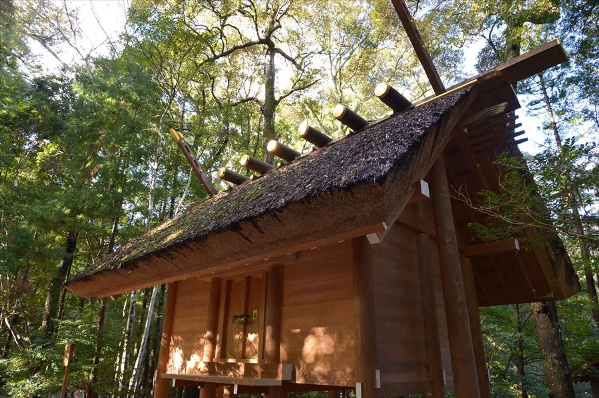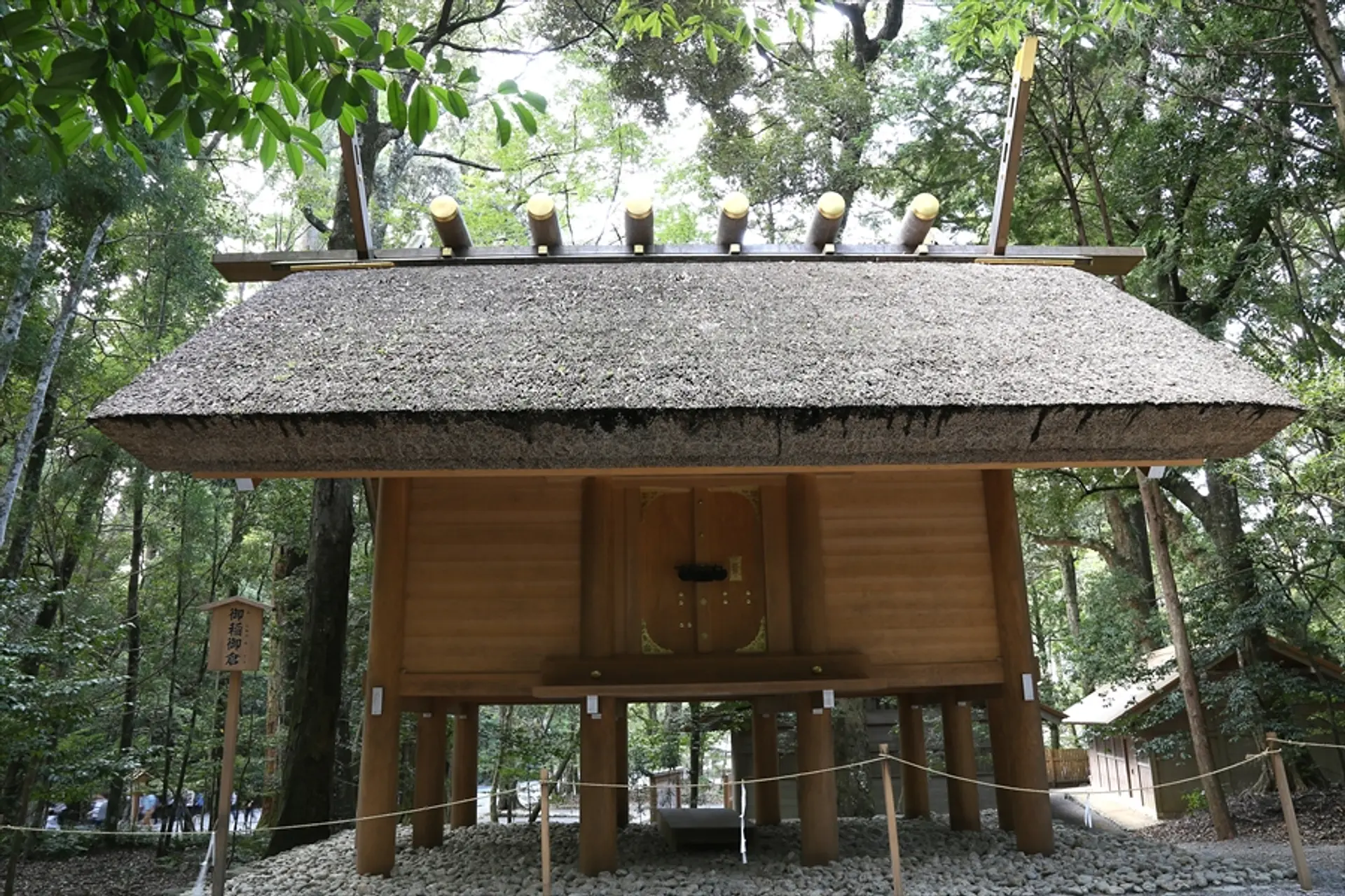 神宮神田より、収穫した抜穂の御稲が納められます。正宮を直接見ることはできませんが、ココは正宮と同じく神明造りになっているので(5分の1の大きさ)正宮の雰囲気を感じることはできますよ。