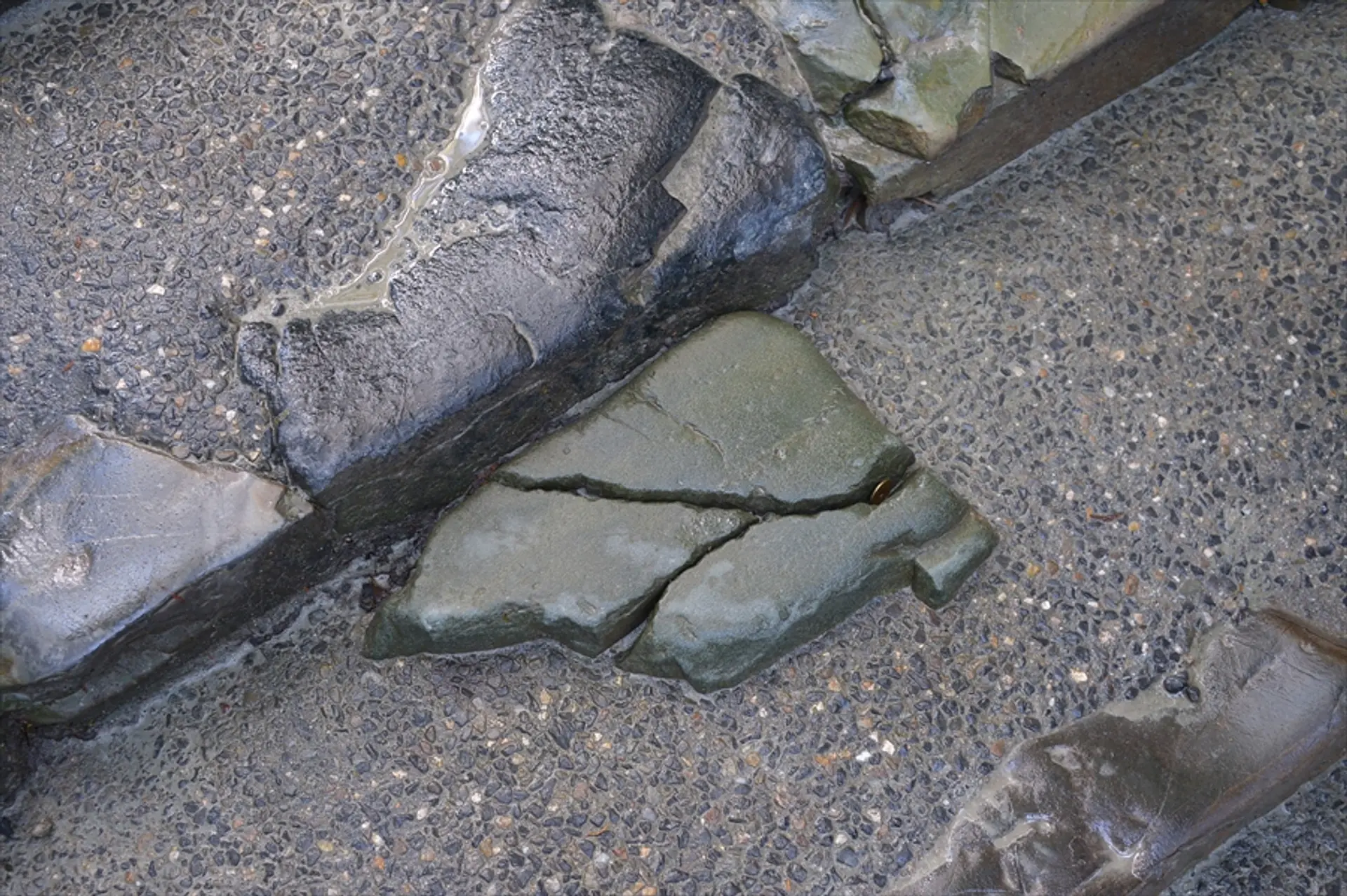 割れ目が「天」という字に見えていたことから、天から降ってきたという言い伝えがあるとか。知らずに踏んでしまう方も多いみたい。つくづくガイドさんがいてヨカッタ!