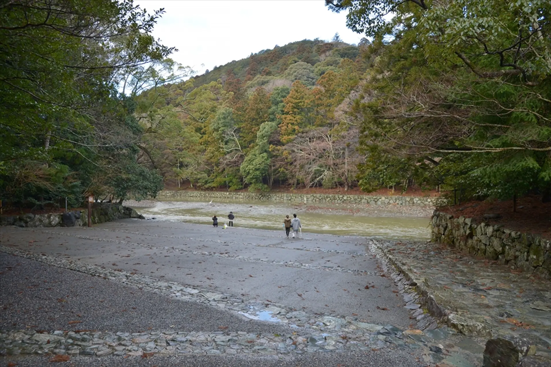ガイドさんの説明で面白かったのが、五十鈴川の守り神をお祀りしている、瀧祭神(たきまつりのかみ)の参拝方法。
