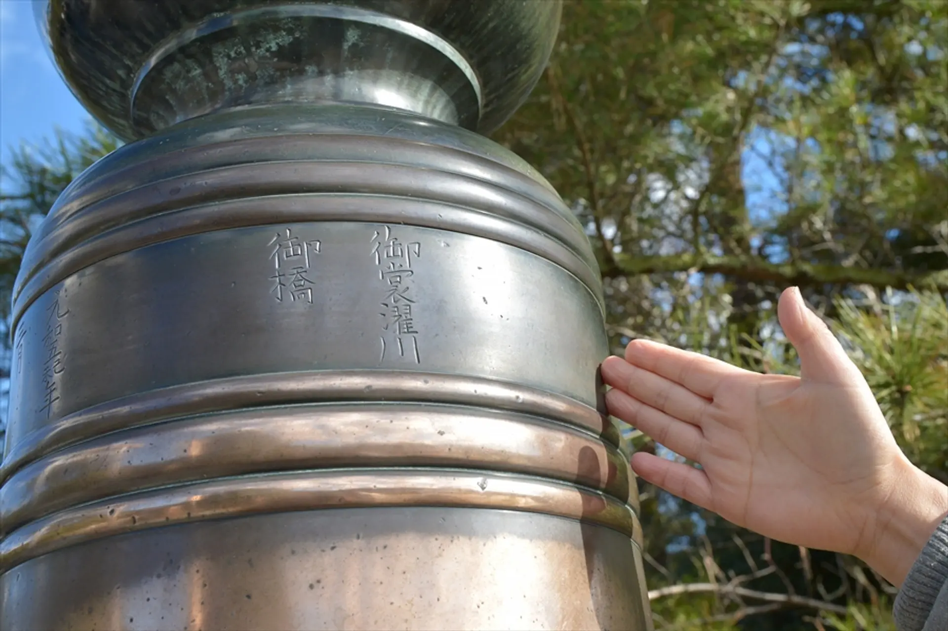 宇治橋の渡り切るところで多くの人がなでていった場所があります。…それは宇治橋の擬宝珠。よくみると1つの擬宝珠だけがテカテカしているのでわかるはず。