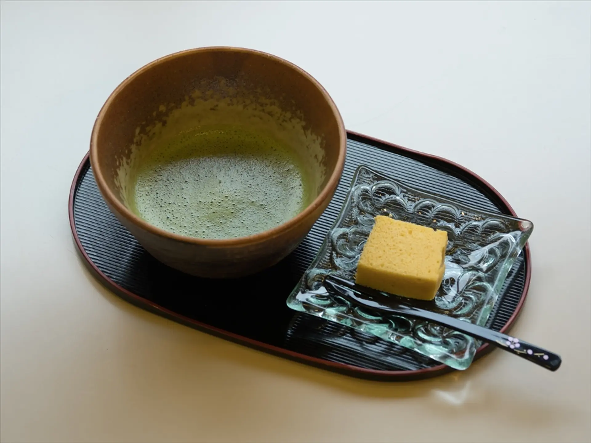 ソファに座ったとたん、抹茶と季の座調理人手作り生菓子がセットになったウエルカムドリンクが出され、早くも手厚いおもてなしを受けました♪