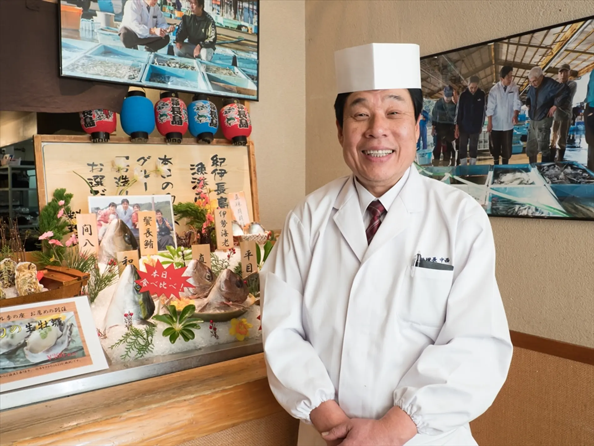 紀伊長島漁港に毎朝足を運び、その日の魚を選びます。なかなか市場に出回らない魚に出会うと、どうやって美味しく美しい料理にしようかワクワクしてしまうとか。