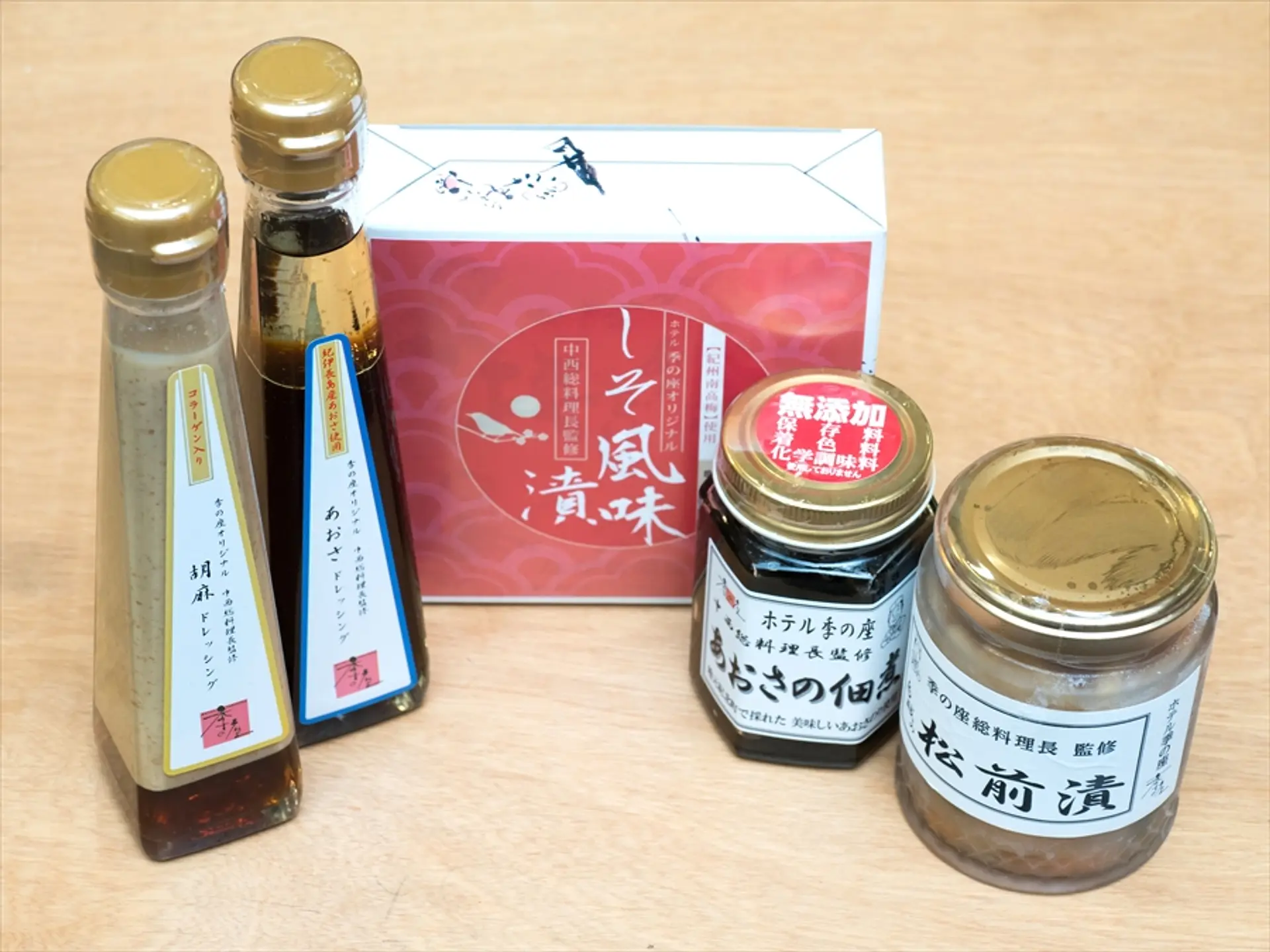 夕食の梅干し、イカの松前漬け、朝食のドレッシング、佃煮などがあり、ダントツの人気です。
