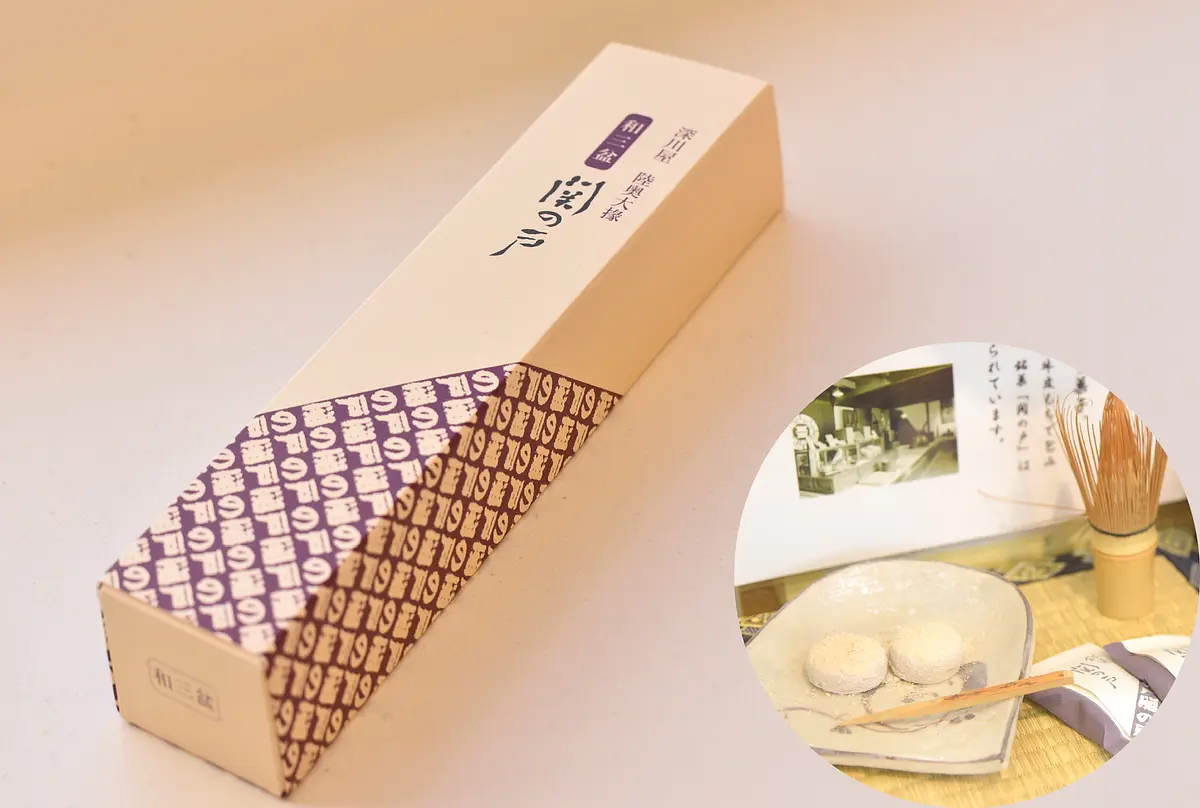 創業370余年、江戸時代から変わらない製法を守っている亀山市関町・深川屋の「関の戸」(648円)。赤小豆のこし餡を白い求肥餅で包み、阿波特産の和三盆をまぶした一口大の上品な餅菓子です。