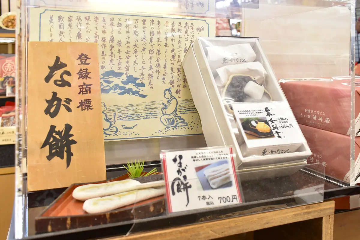 四日市名物「笹井屋」の「なが餅」(7本入700円)も見逃せない1品。東海道の宿場町だった四日市で伊勢詣での旅人の間で評判となった素朴な味わいが人気です。