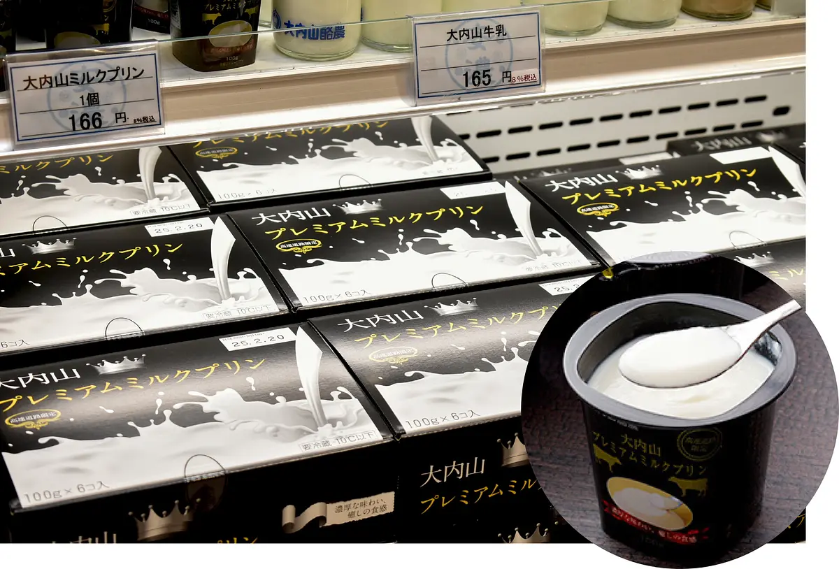 お土産コーナーでは大内山牛乳を使ったスイーツに注目