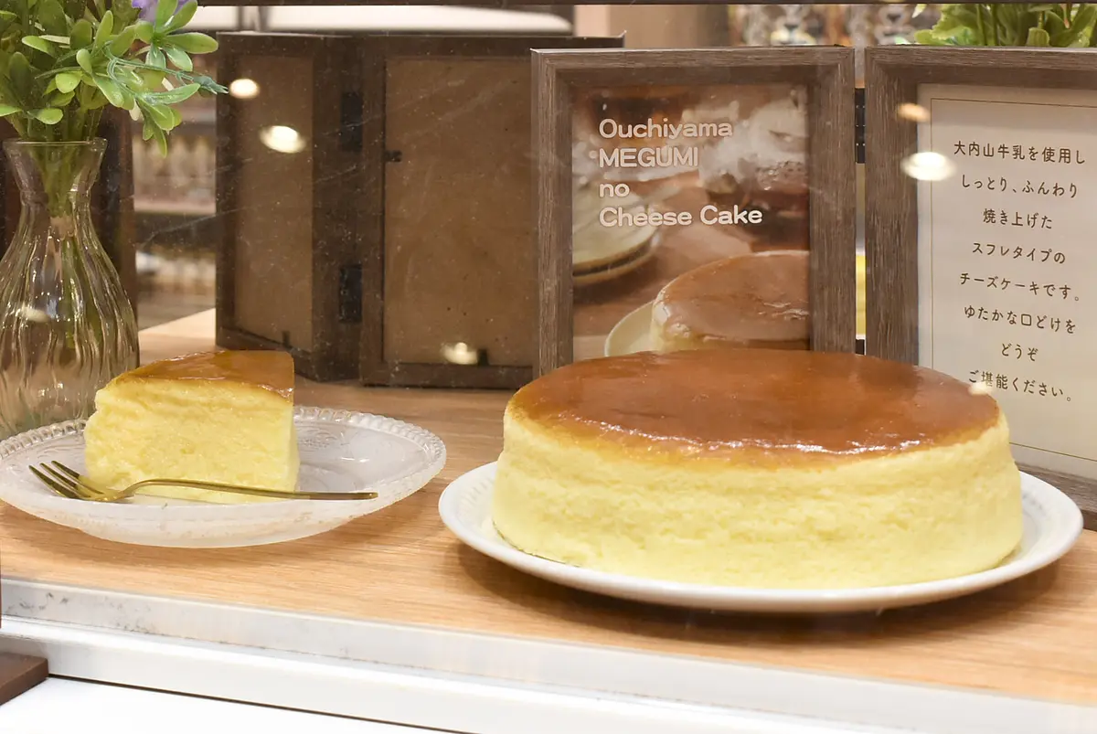 「大内山恵みのチーズケーキ」(1,870円)は、大内山牛乳を使用し、しっとり、ふんわり焼き上げたスフレタイプのチーズケーキ。なめらかな口どけが楽しめます。