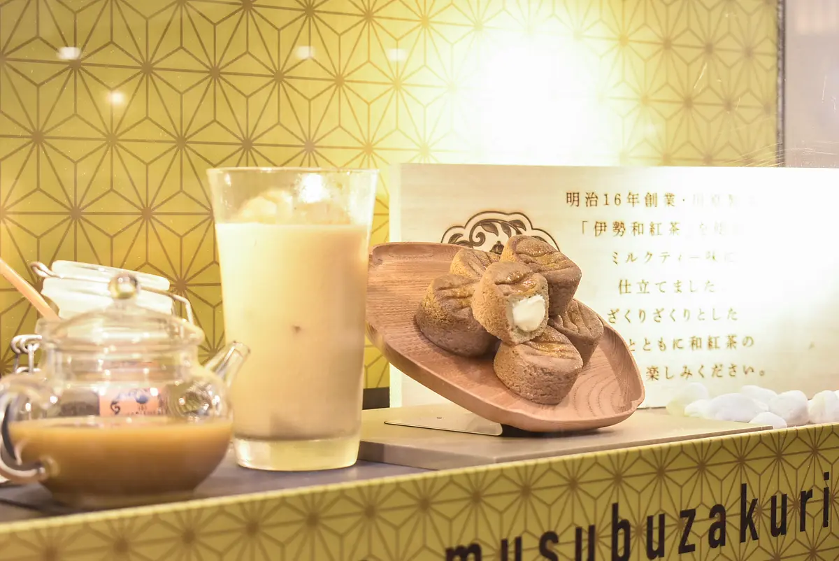 「お伊勢の結(むすぶ)ざくり」(3個入680円・5個入1,020円・10個入1,930円)は、明治16年創業の川原製茶の「伊勢和紅茶」をクッキー生地に使用し、ホワイトチョコを包み込んで焼き上げたミルクティー風味のガレット。伊勢神宮の白石や黒石を敷き詰めた参道を歩いたときに足元に感じたような“ザクザク”とした食感が楽しめます。